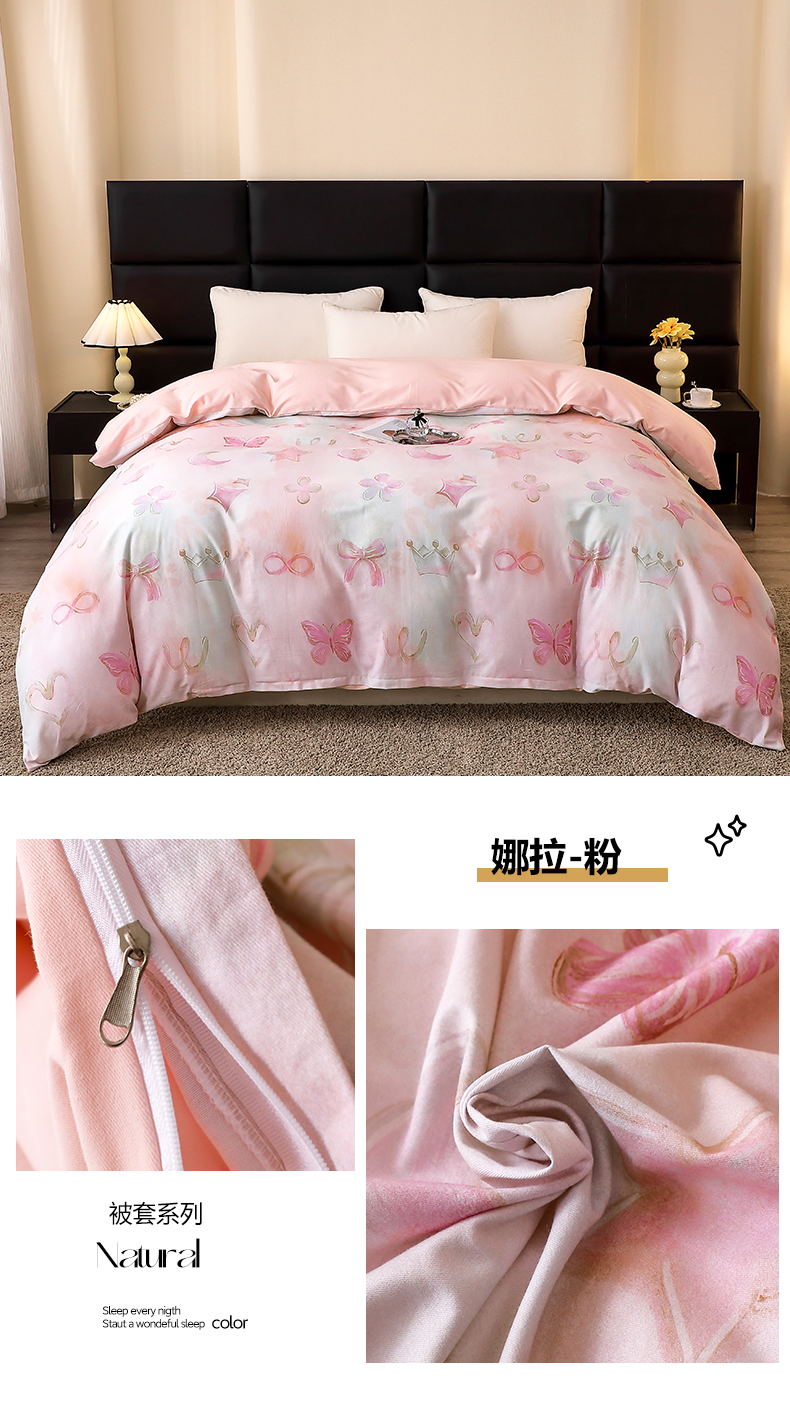 商品名称:馨雅家纺 2025新款全棉磨毛数码印花单品被套 娜拉-粉