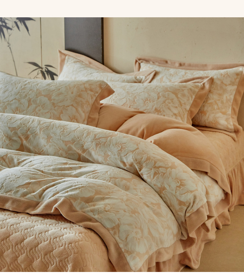 (总)孑寐家纺 2025新款宽边拼角雕花绒床盖四件套,花夕颜-粉色,花夕颜-橘色,花夕颜-绿色,香雪海-灰色,香雪海-橘色,香雪海-绿色,香雪海-雾蓝