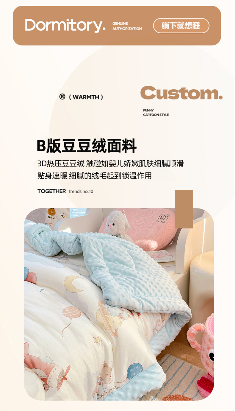 (总)丝涟家居 2025新款羊羔绒牛奶绒毛巾绣儿童脱卸被子,卡通熊,快乐小狗,快乐鸭,趣味猫咪