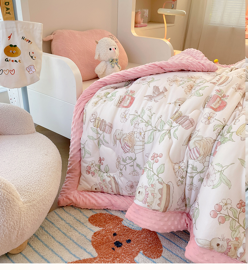 丝涟家居 2025新款A类双面针织棉卡通小清新滚绳工艺夏被田园兔,田园兔