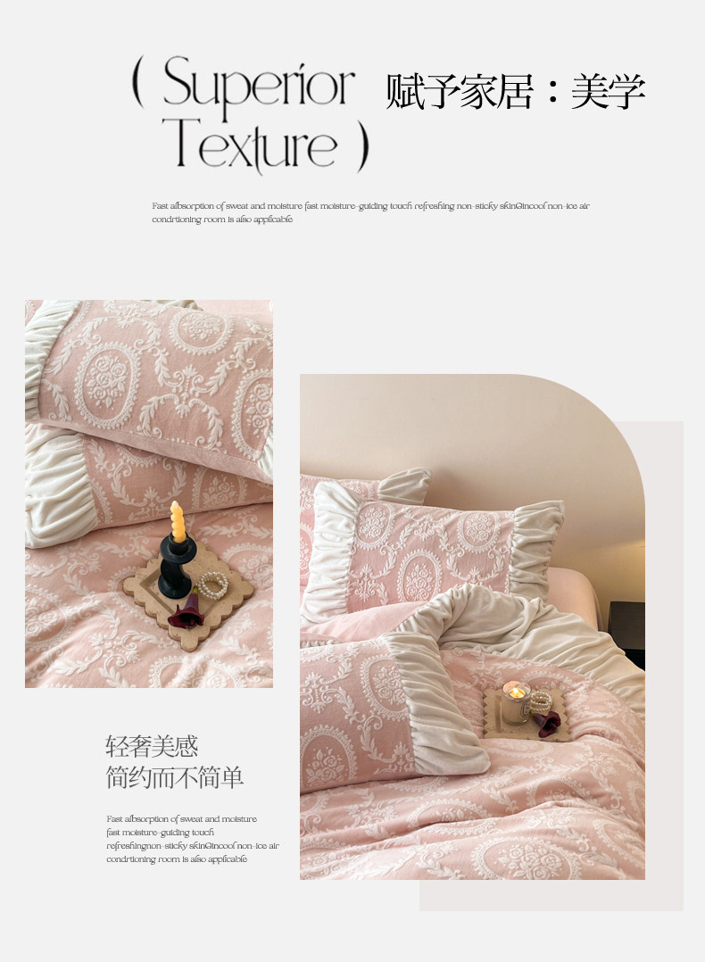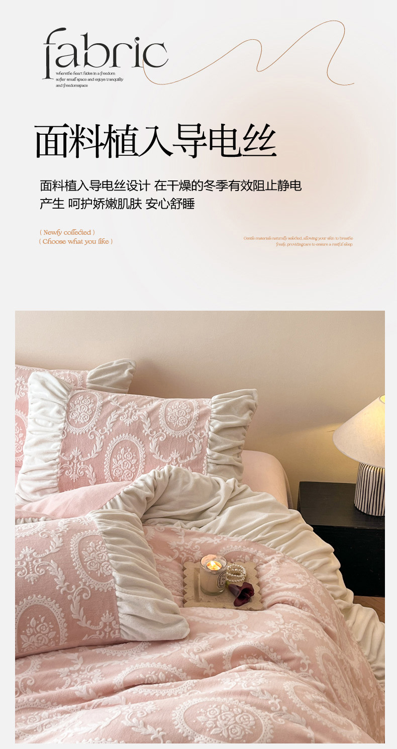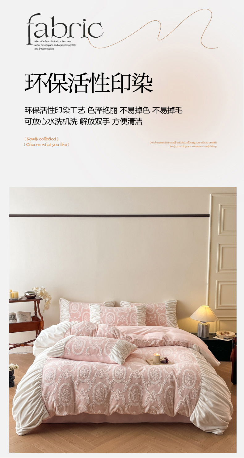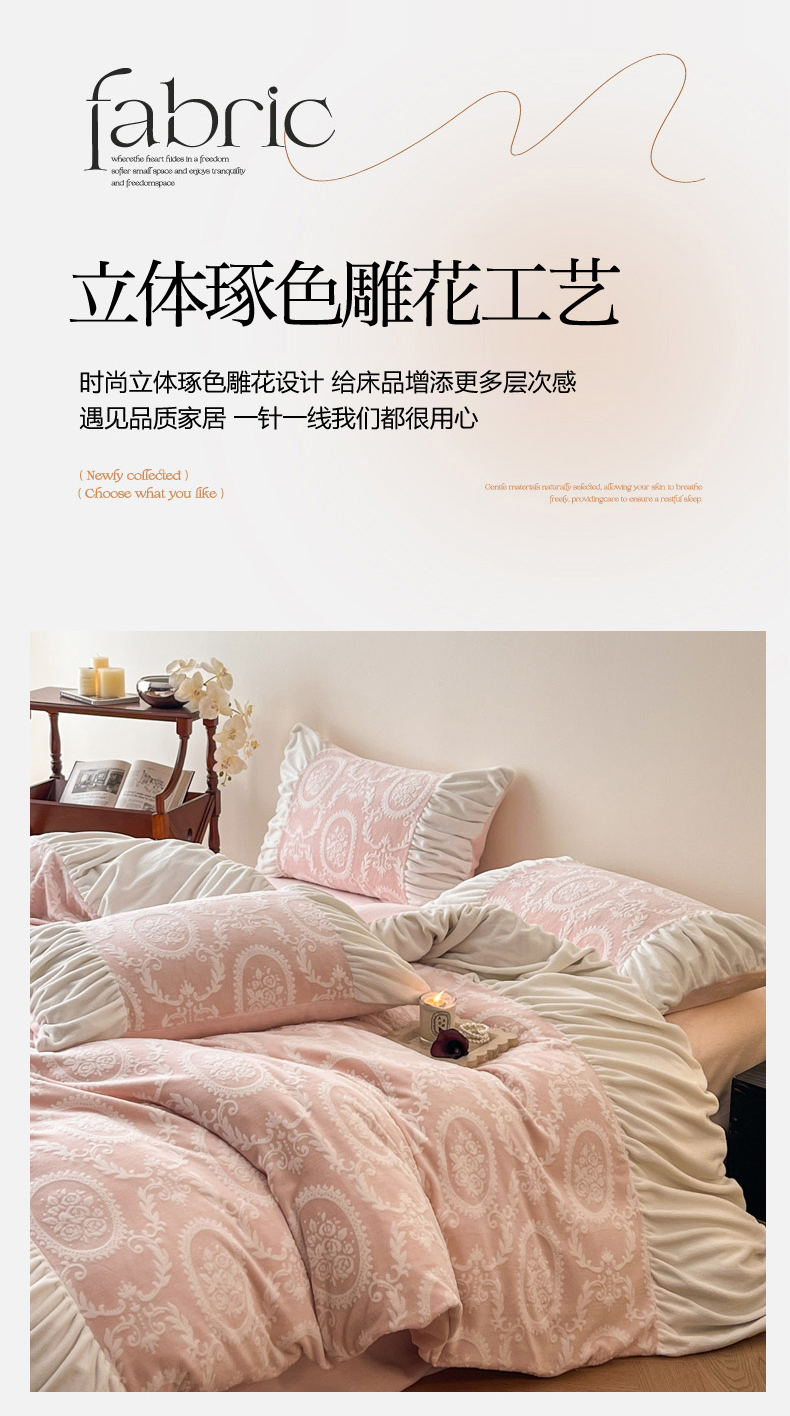当前位置: 91家纺网 > 商品网购 > 床品套件 > 四件套 > 牛奶绒四件套 > 慕澄家纺 2025新款高克重泡泡袖琢色雕花牛奶绒四件套 城堡