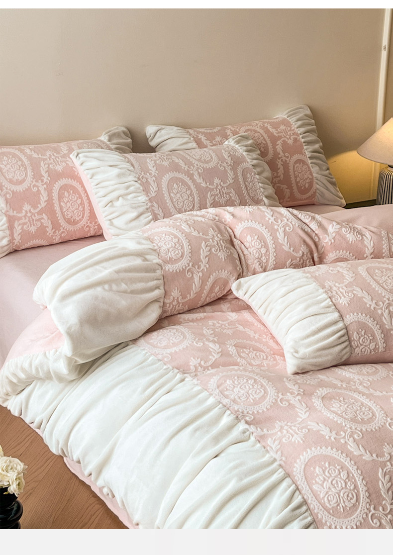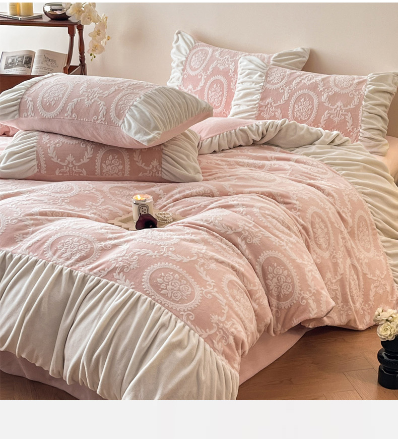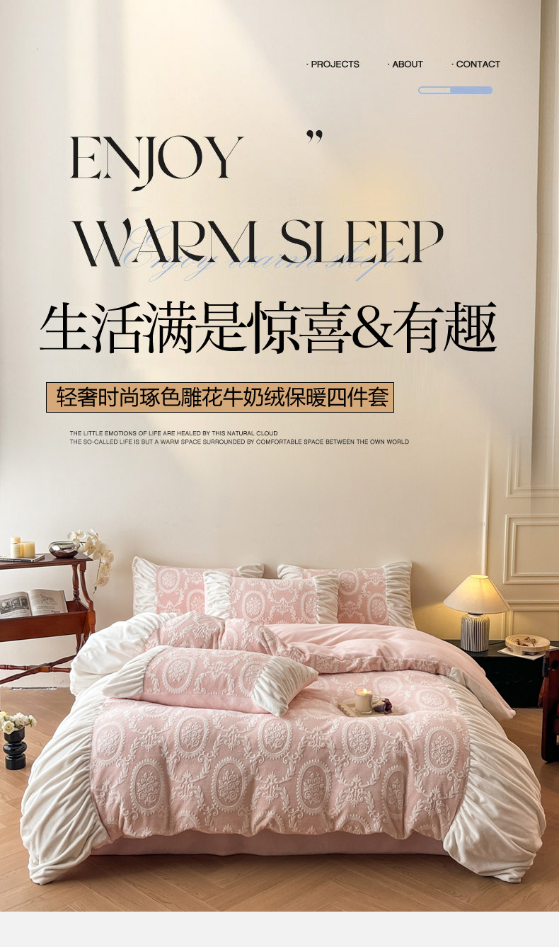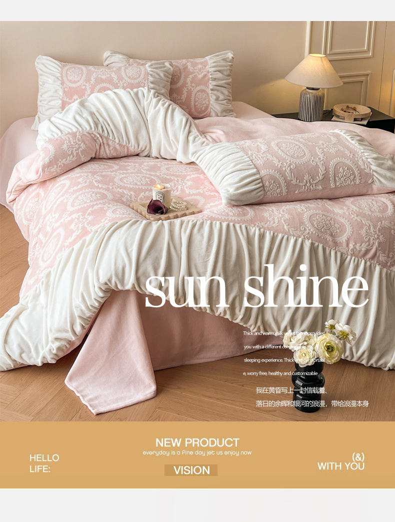 当前位置: 91家纺网 > 商品网购 > 床品套件 > 四件套 > 牛奶绒四件套 > 慕澄家纺 2025新款高克重泡泡袖琢色雕花牛奶绒四件套 城堡