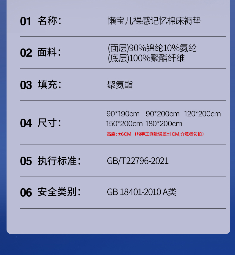 当前位置: 91家纺网 > 商品网购 > 床垫/床褥 > 慢回弹床垫 > 丽笙被芯 2025新款懒宝儿裸感记忆棉床褥垫床垫 懒宝儿记忆床垫(风格1)