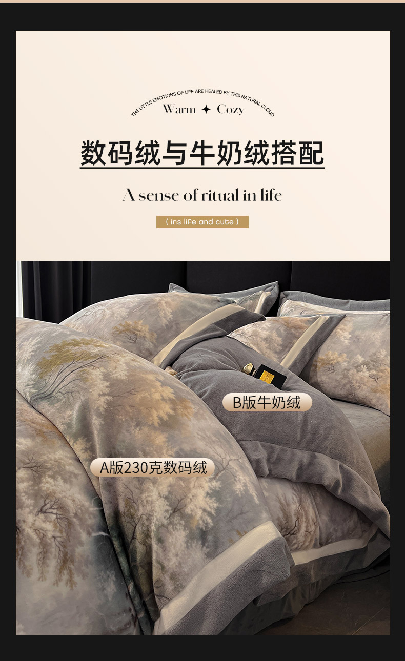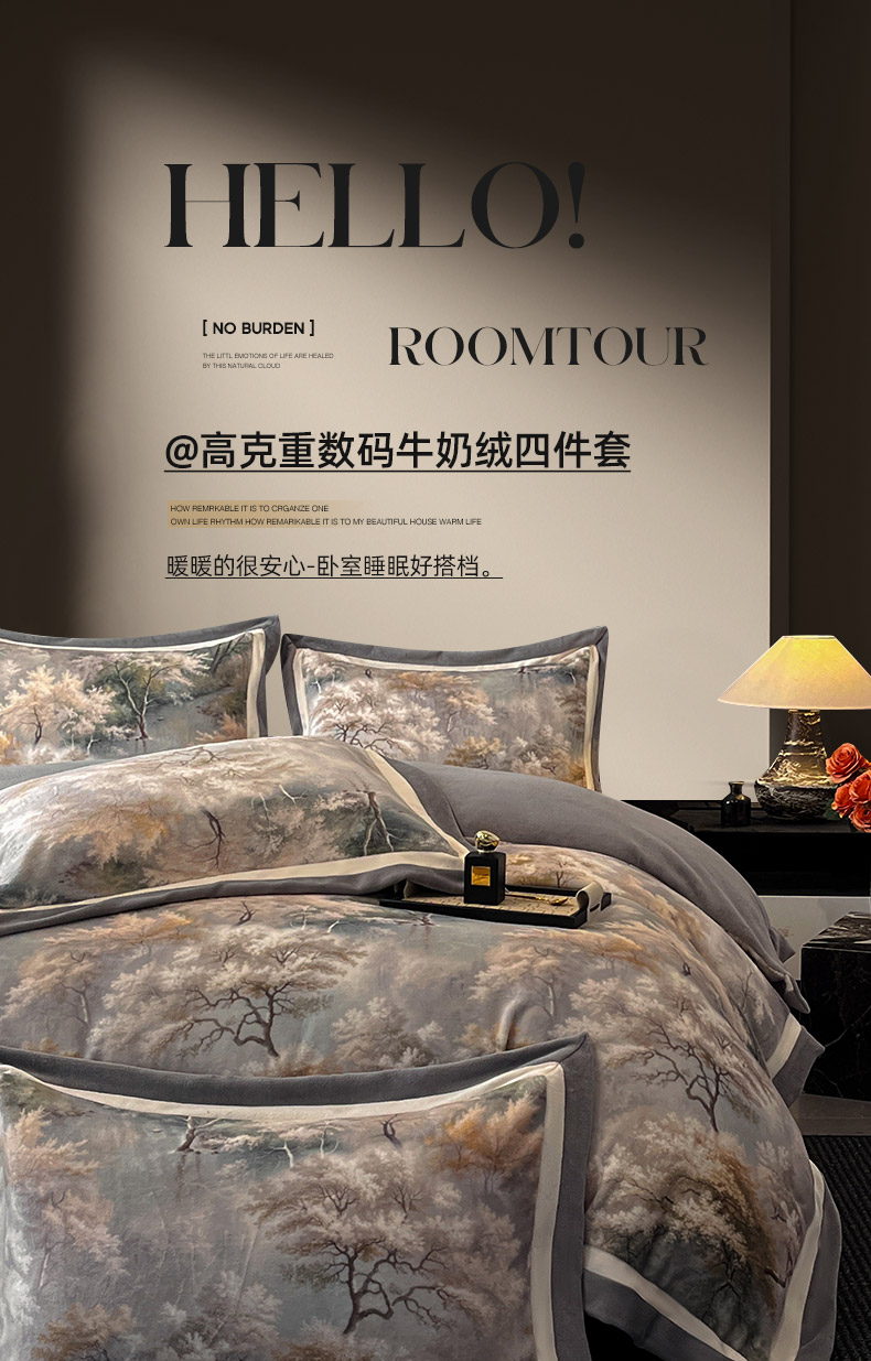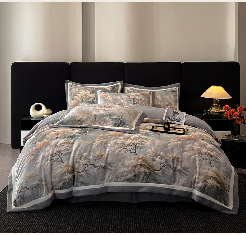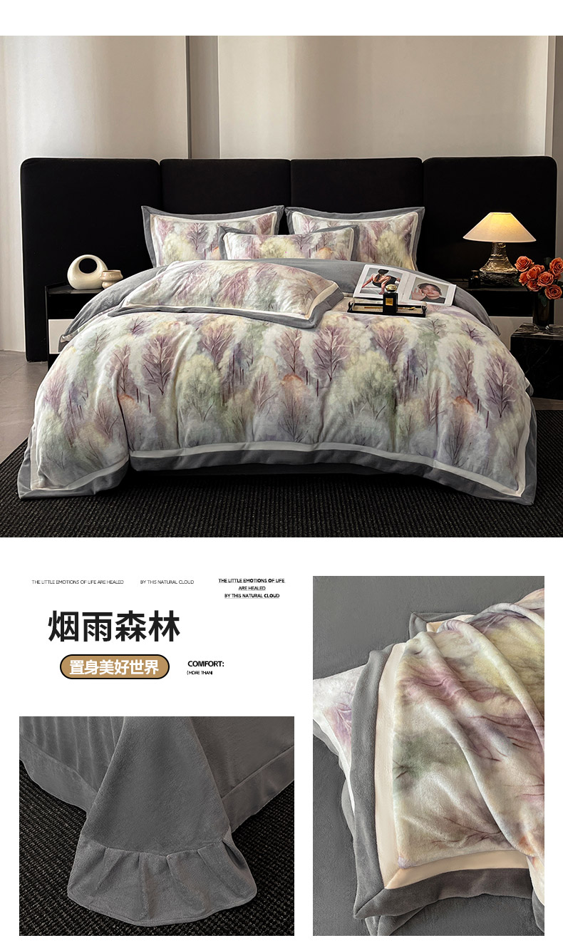 当前位置: 91家纺网 > 商品网购 > 床品套件 > 四件套 > 牛奶绒四件套 > 吾诺家居 2025新款双拼角工艺数码牛奶绒四件套-芳华 秘境