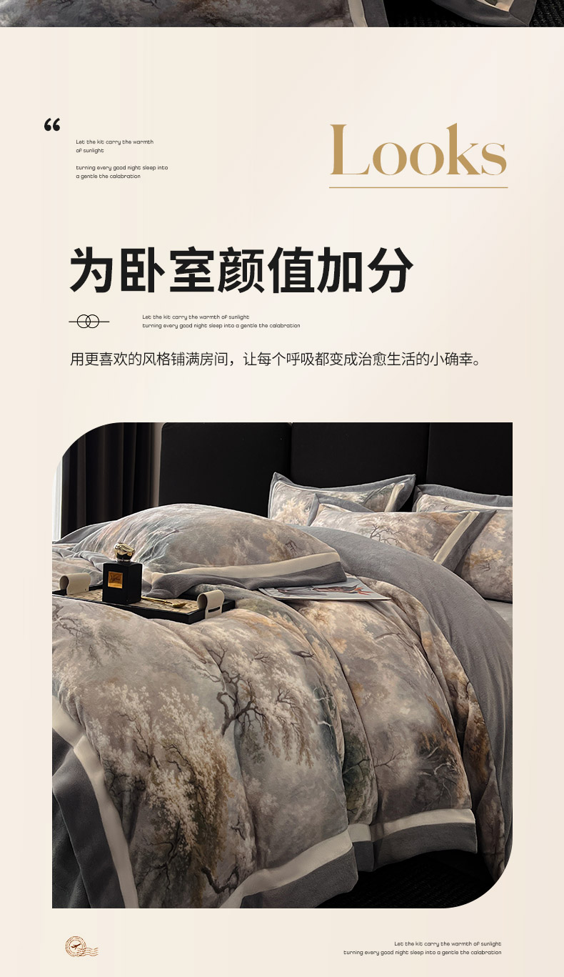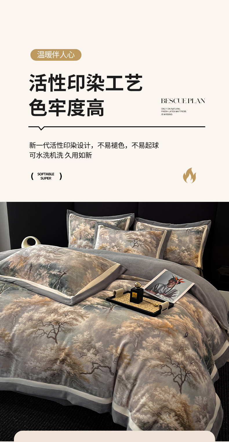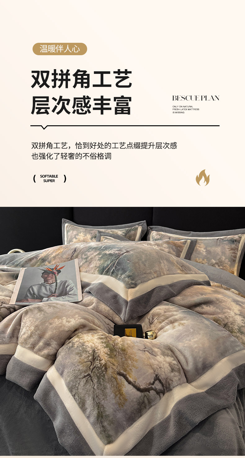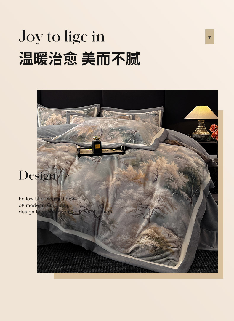 当前位置: 91家纺网 > 商品网购 > 床品套件 > 四件套 > 牛奶绒四件套 > 吾诺家居 2025新款双拼角工艺数码牛奶绒四件套-芳华 秘境