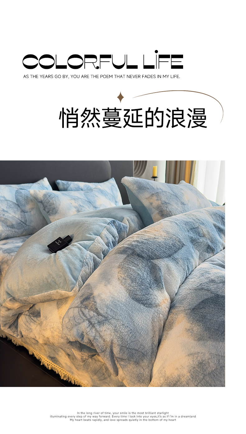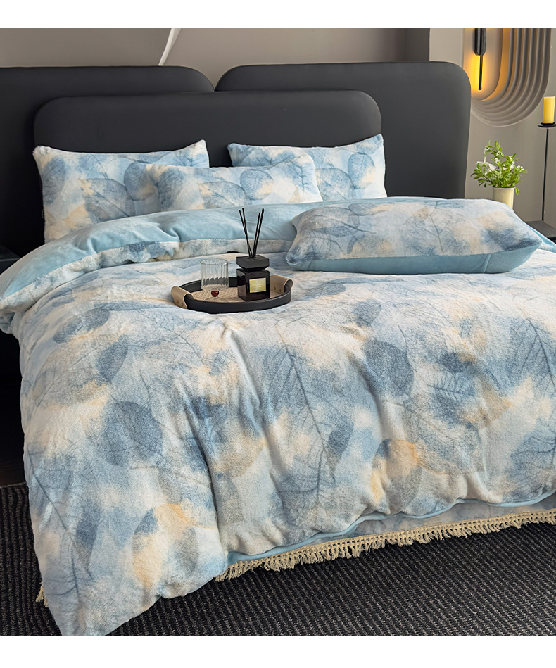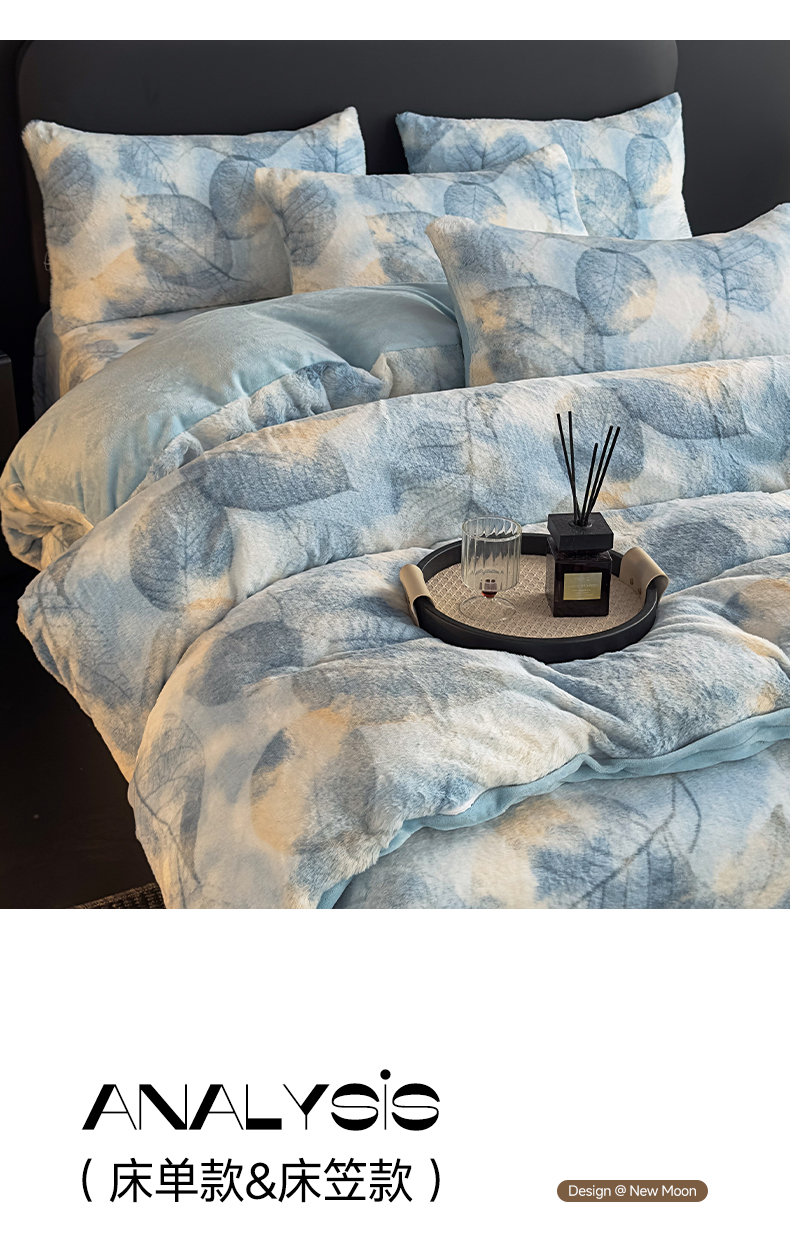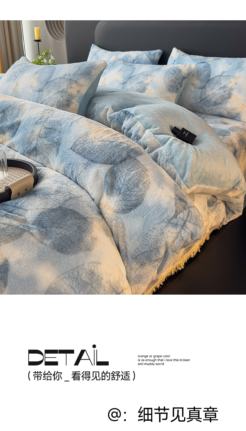 当前位置: 91家纺网 > 商品网购 > 床品套件 > 四件套 > 兔毛绒四件套 > 家之硕家纺 2025新款高克重兔毛绒轻奢风床单床笠四件套系列 香叶蓝
