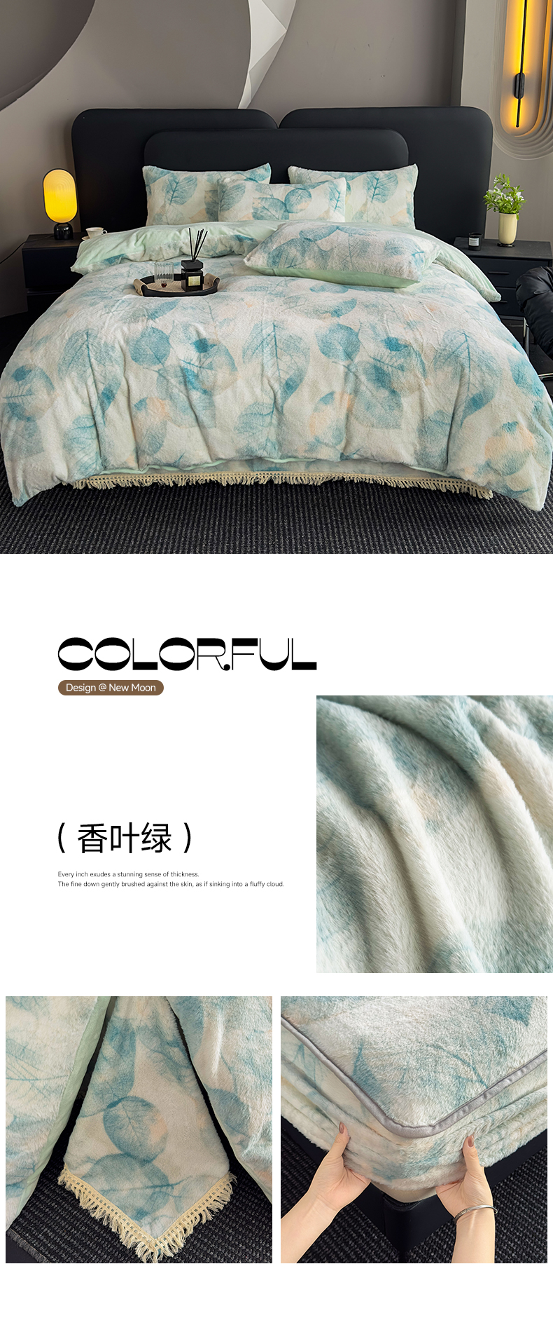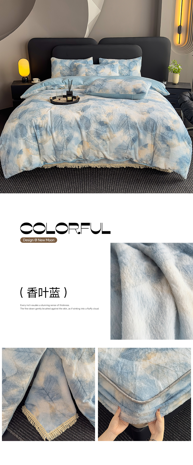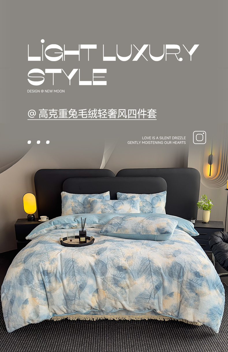 当前位置: 91家纺网 > 商品网购 > 床品套件 > 四件套 > 兔毛绒四件套 > 家之硕家纺 2025新款高克重兔毛绒轻奢风床单床笠四件套系列 香叶蓝