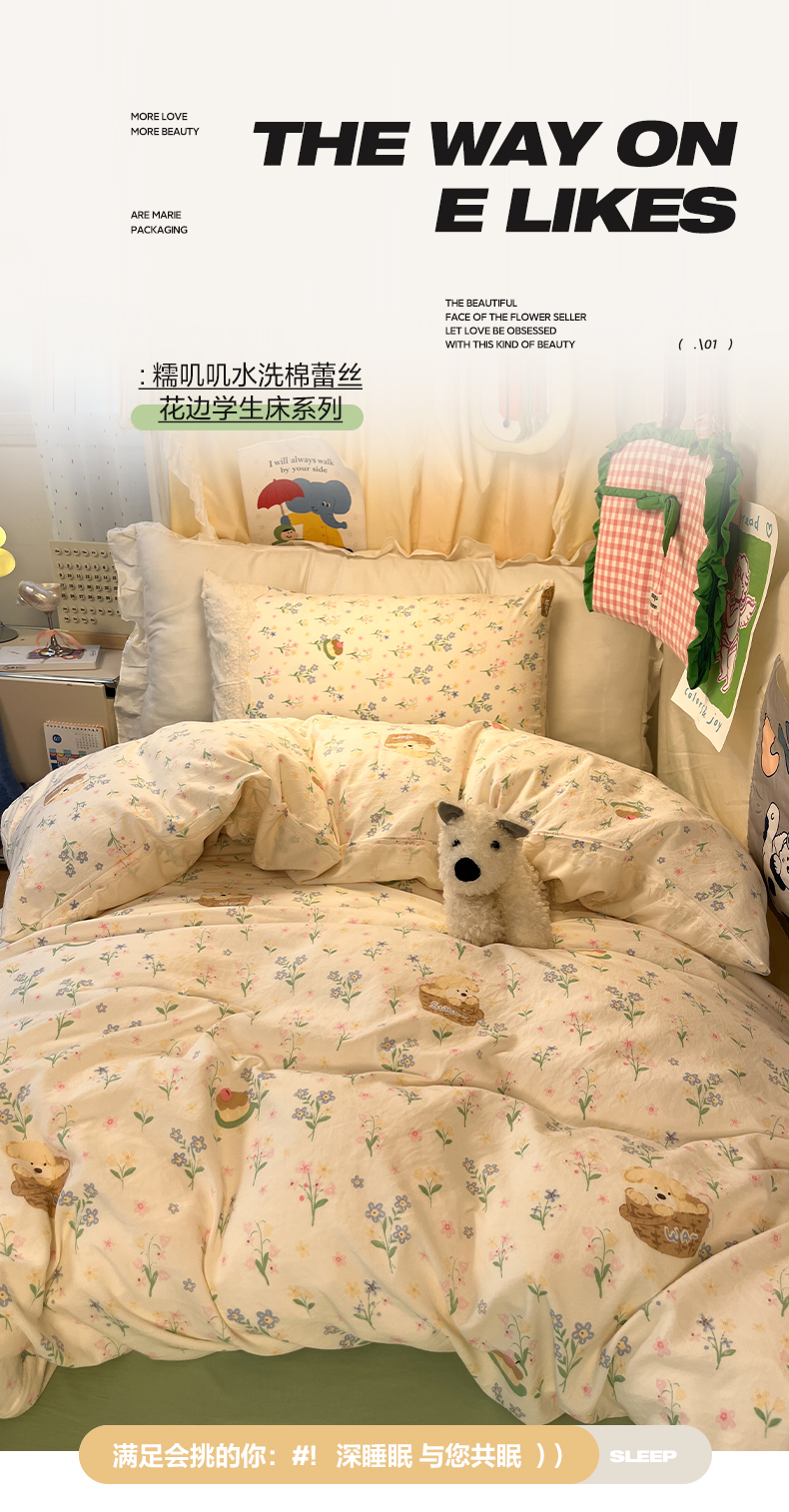 当前位置: 91家纺网 > 商品网购 > 床品套件 > 四件套 > 澜妃 2025新款糯叽叽水洗棉全棉蕾丝花边宿舍床上下铺三件套-艾意系列 艾意-爱情手礼