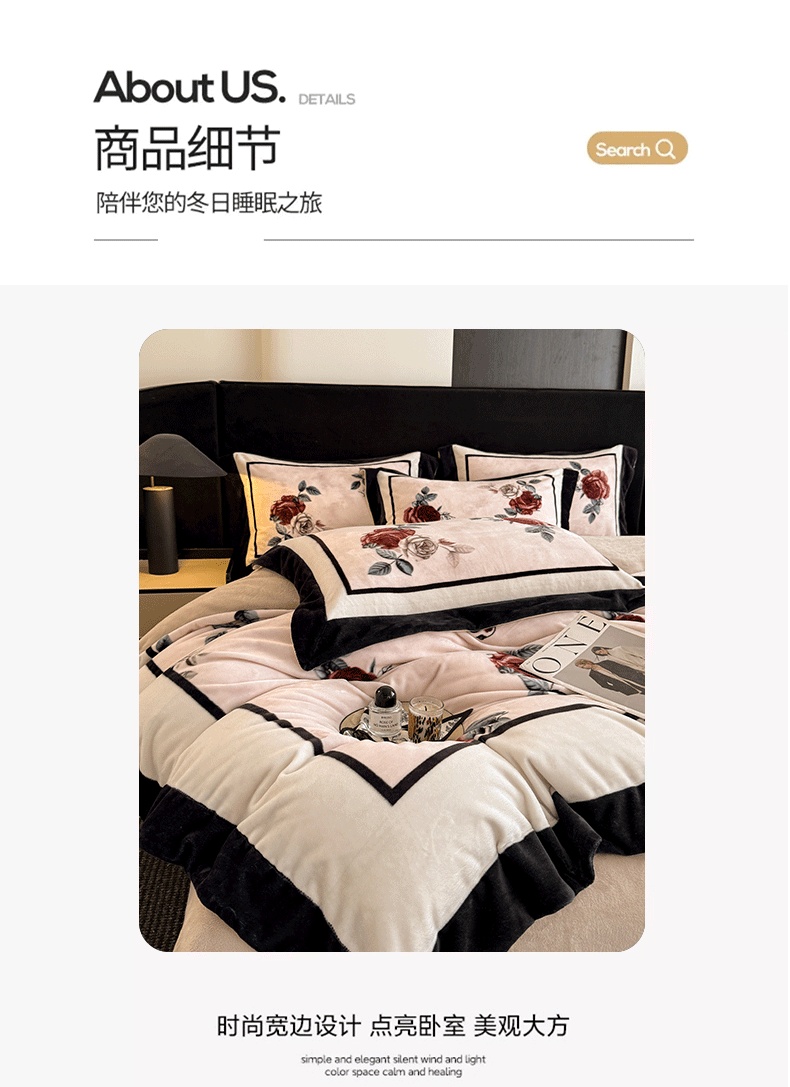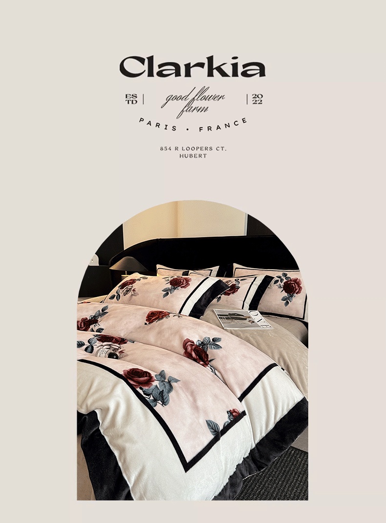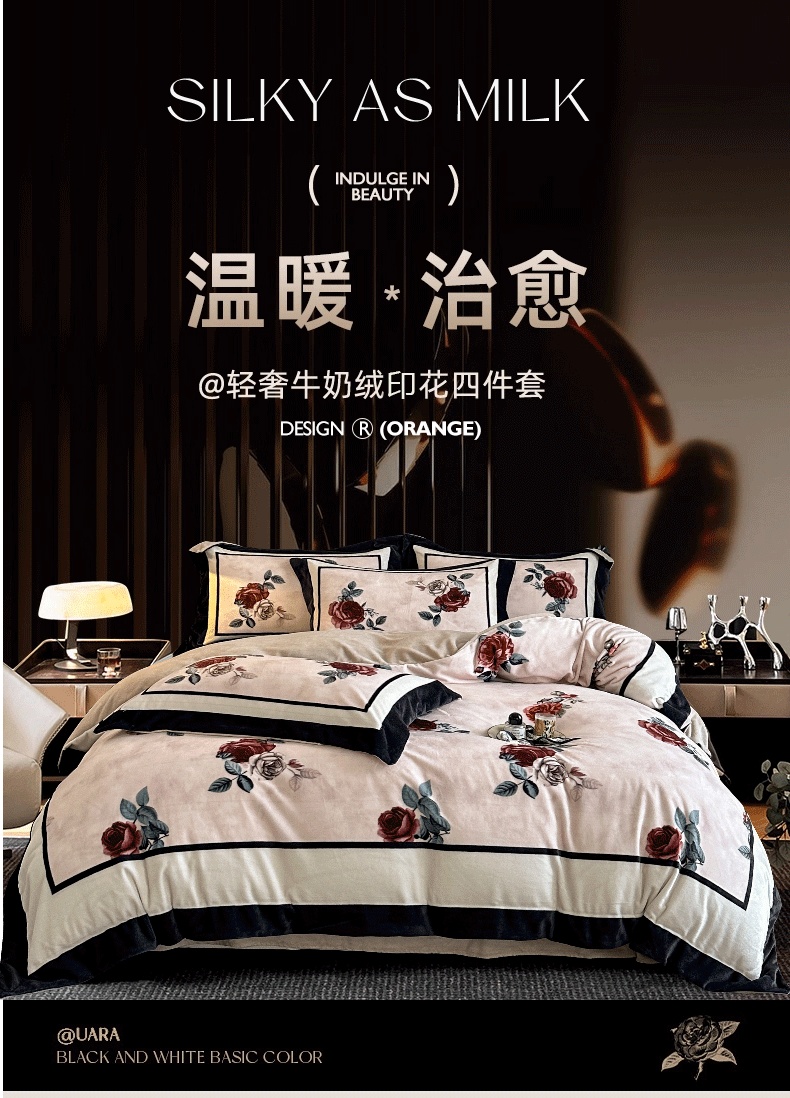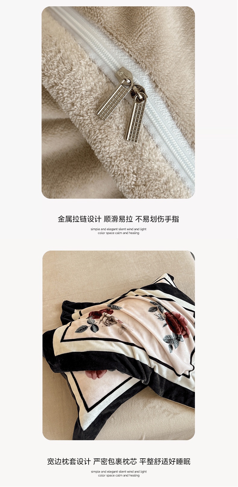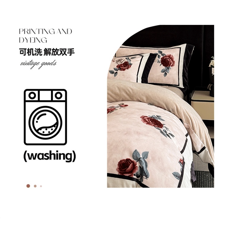 商品名称:花漾家居 2025新款秋冬新品法式轻奢复古宽边大版牛奶绒四件套(提供买家秀) 玫瑰时光