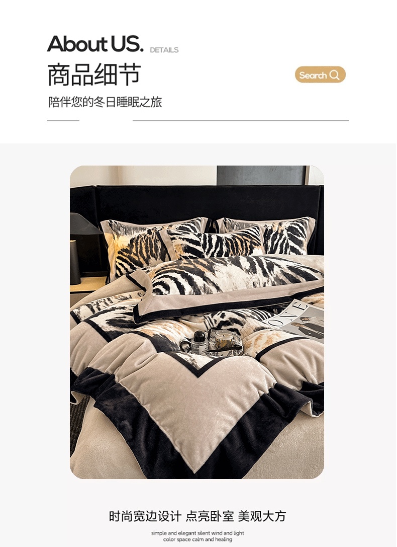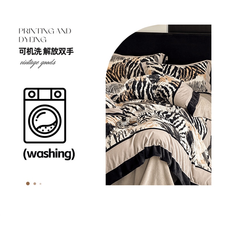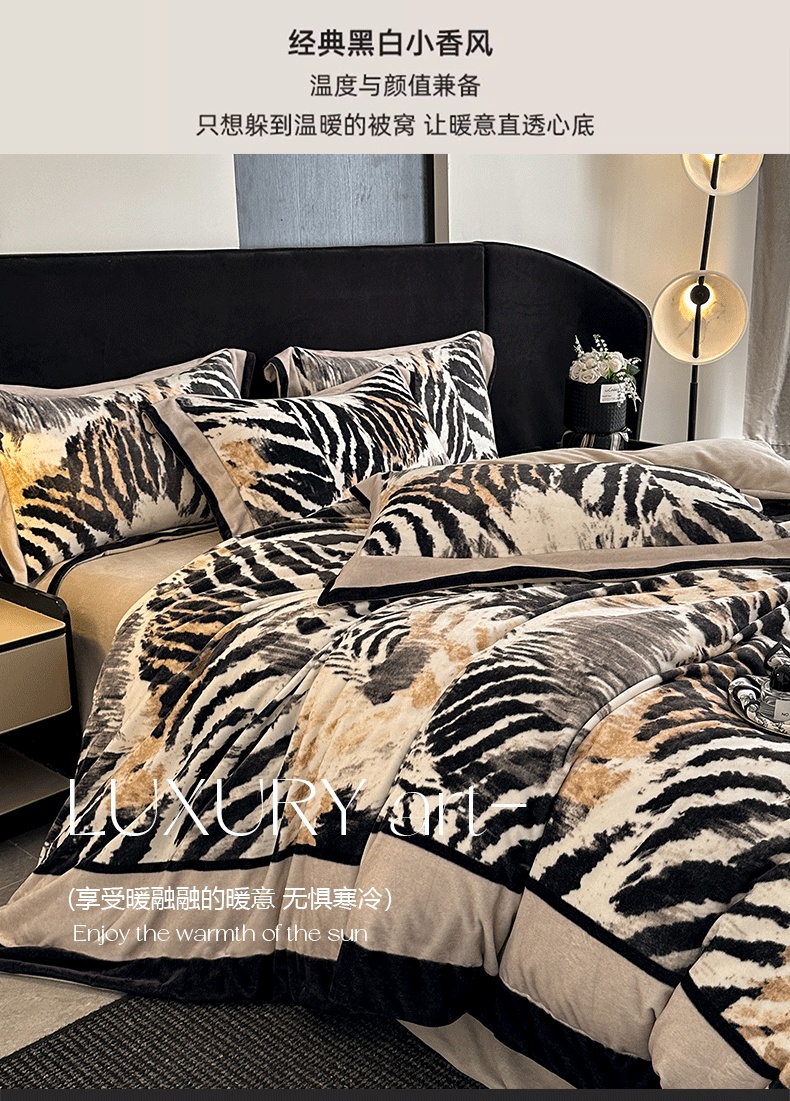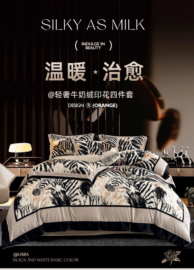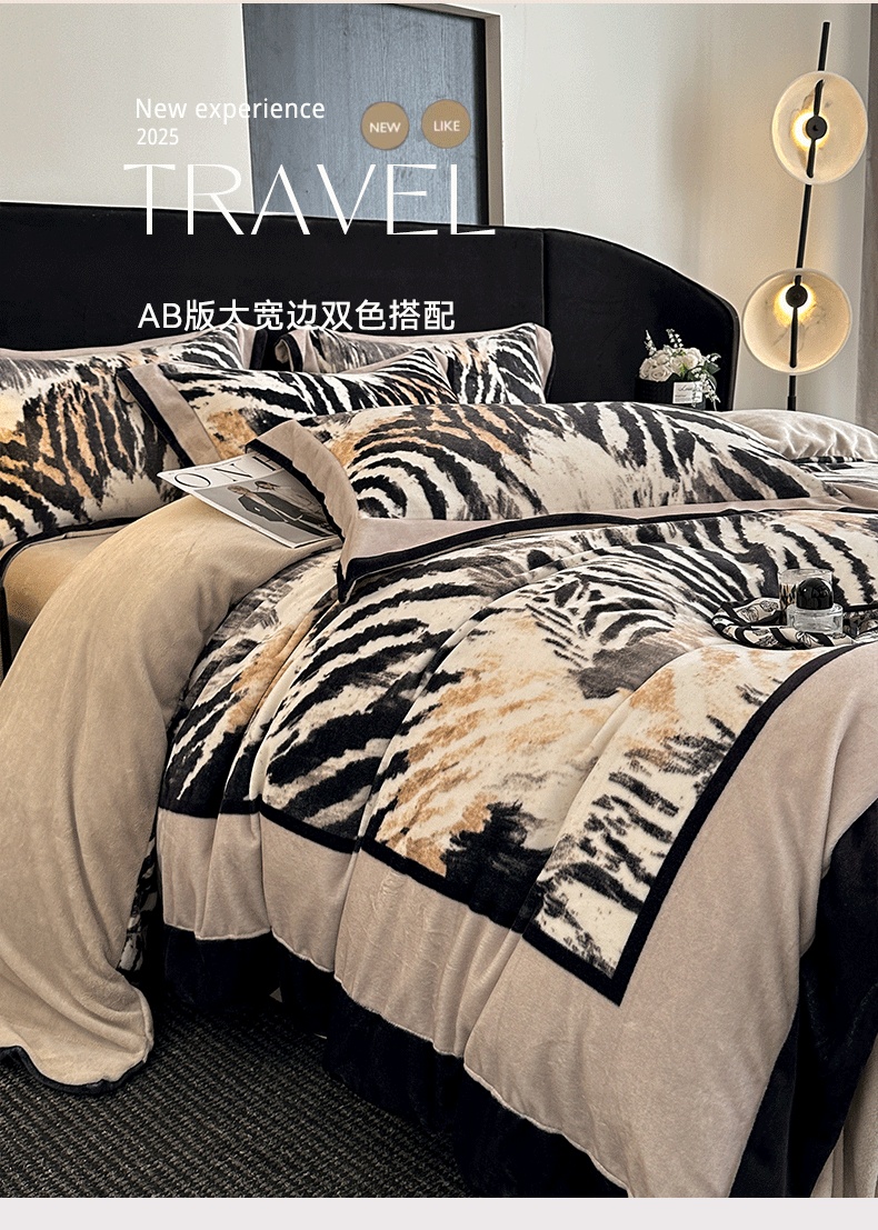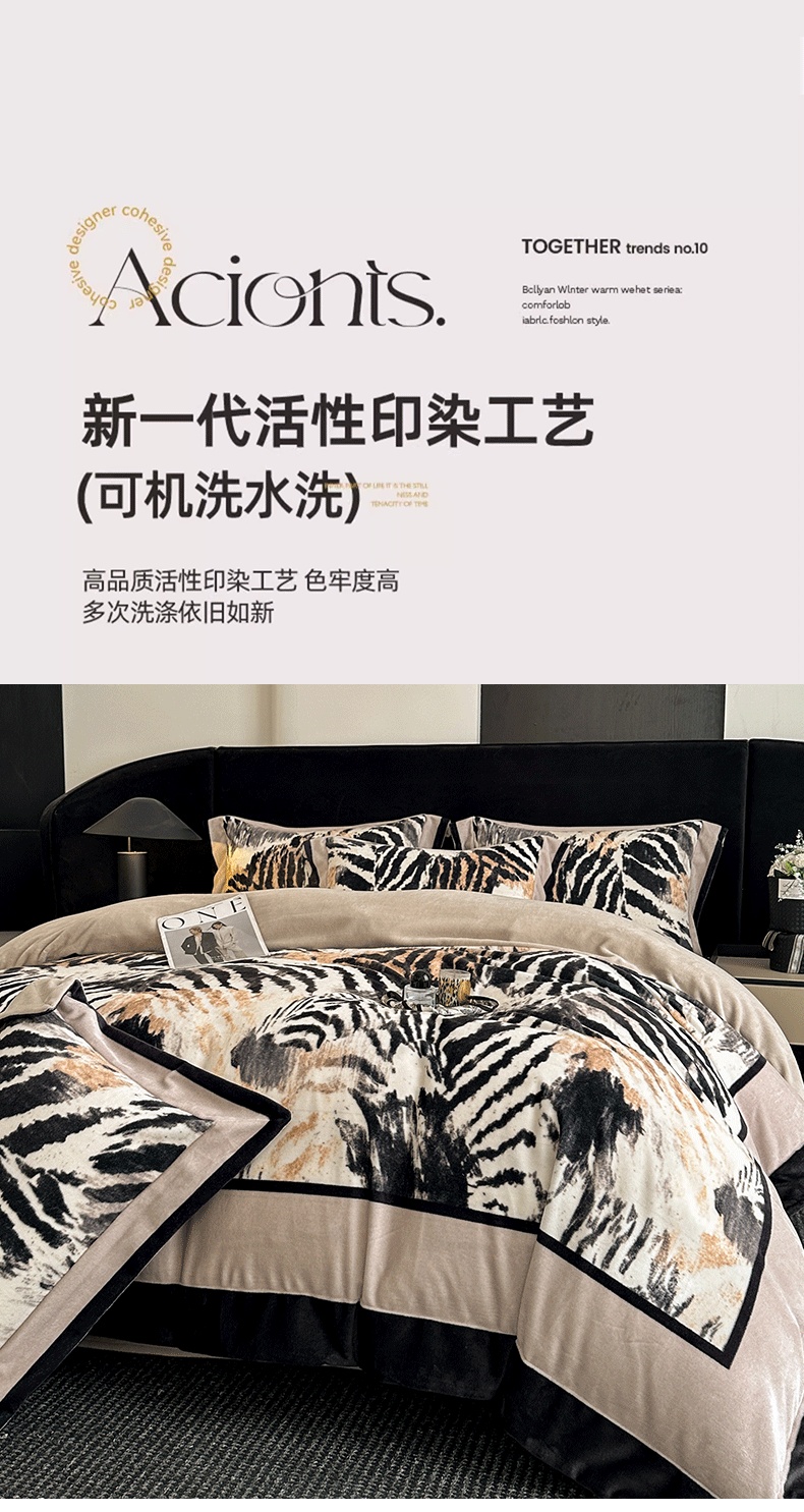 花漾 2024新款欧式轻奢压线牛奶绒四件套 豹纹,豹纹