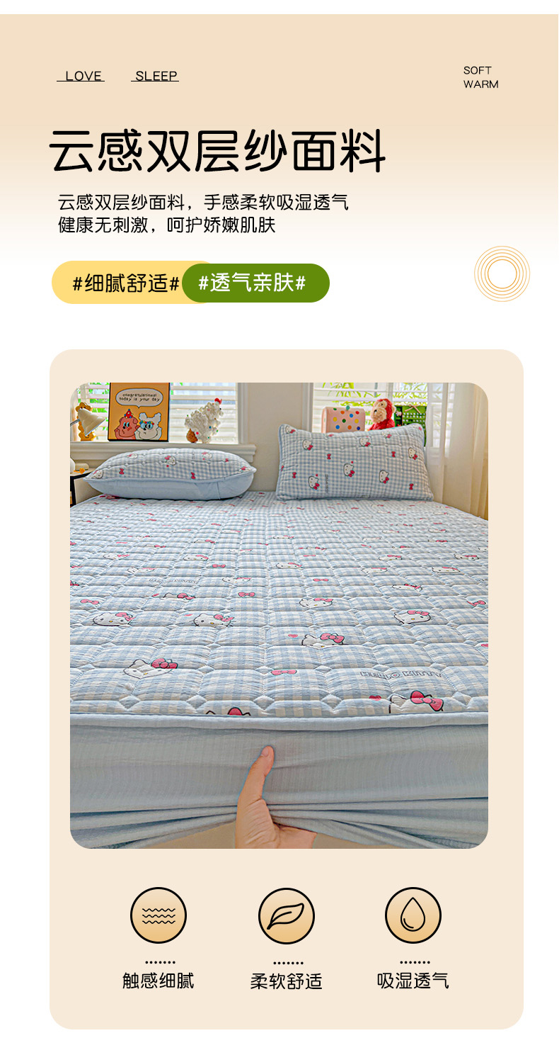 星禾优选 2025新款三丽鸥云感双层纱夹棉床笠系列-大床款 床笠款-胡须蓝kt