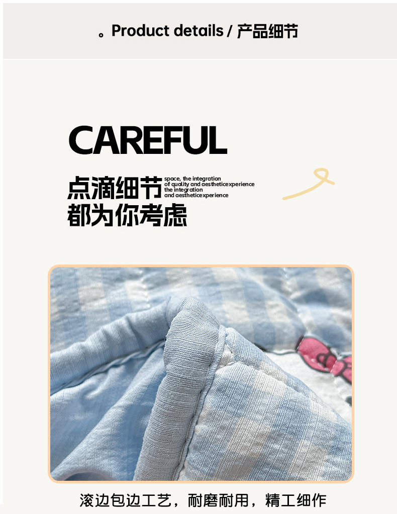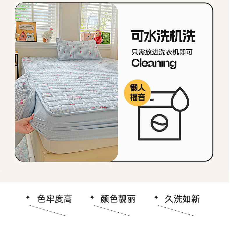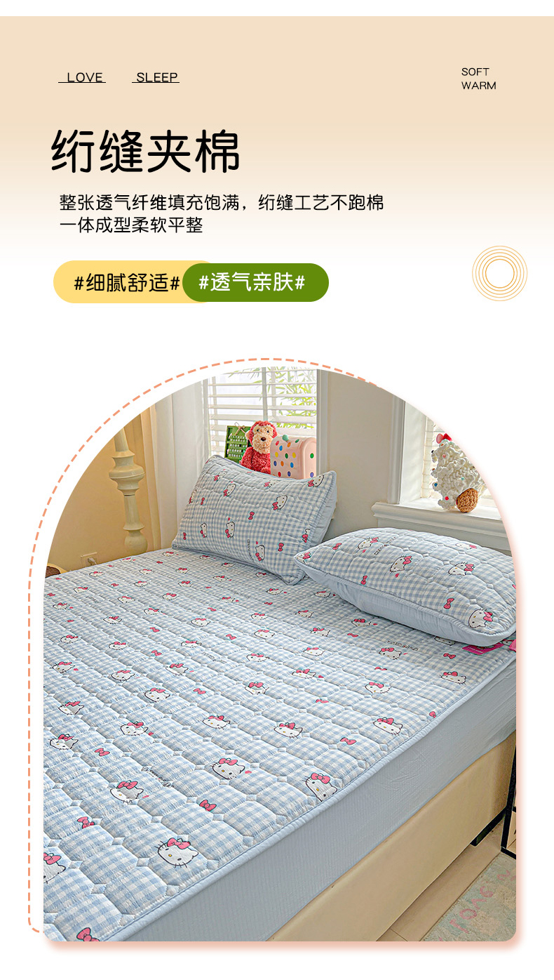 商品名称:星禾优选 2025新款三丽鸥云感双层纱夹棉床笠系列-大床款 床笠款-胡须蓝kt