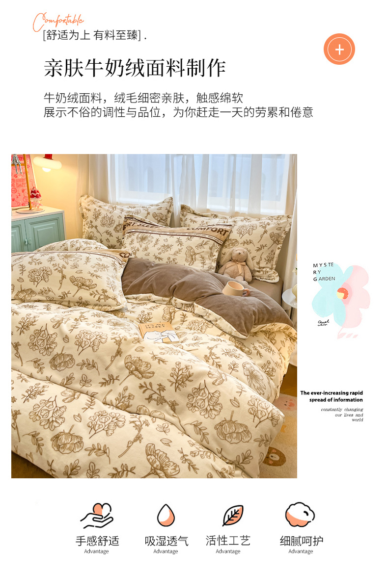 (总)慕尚家纺 2025新款田园花卉类印花牛奶绒高克重单被套