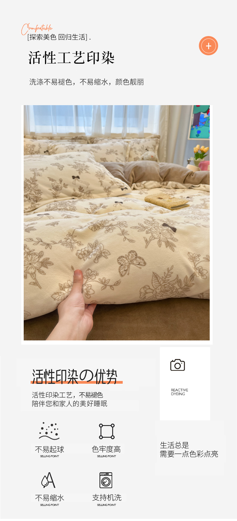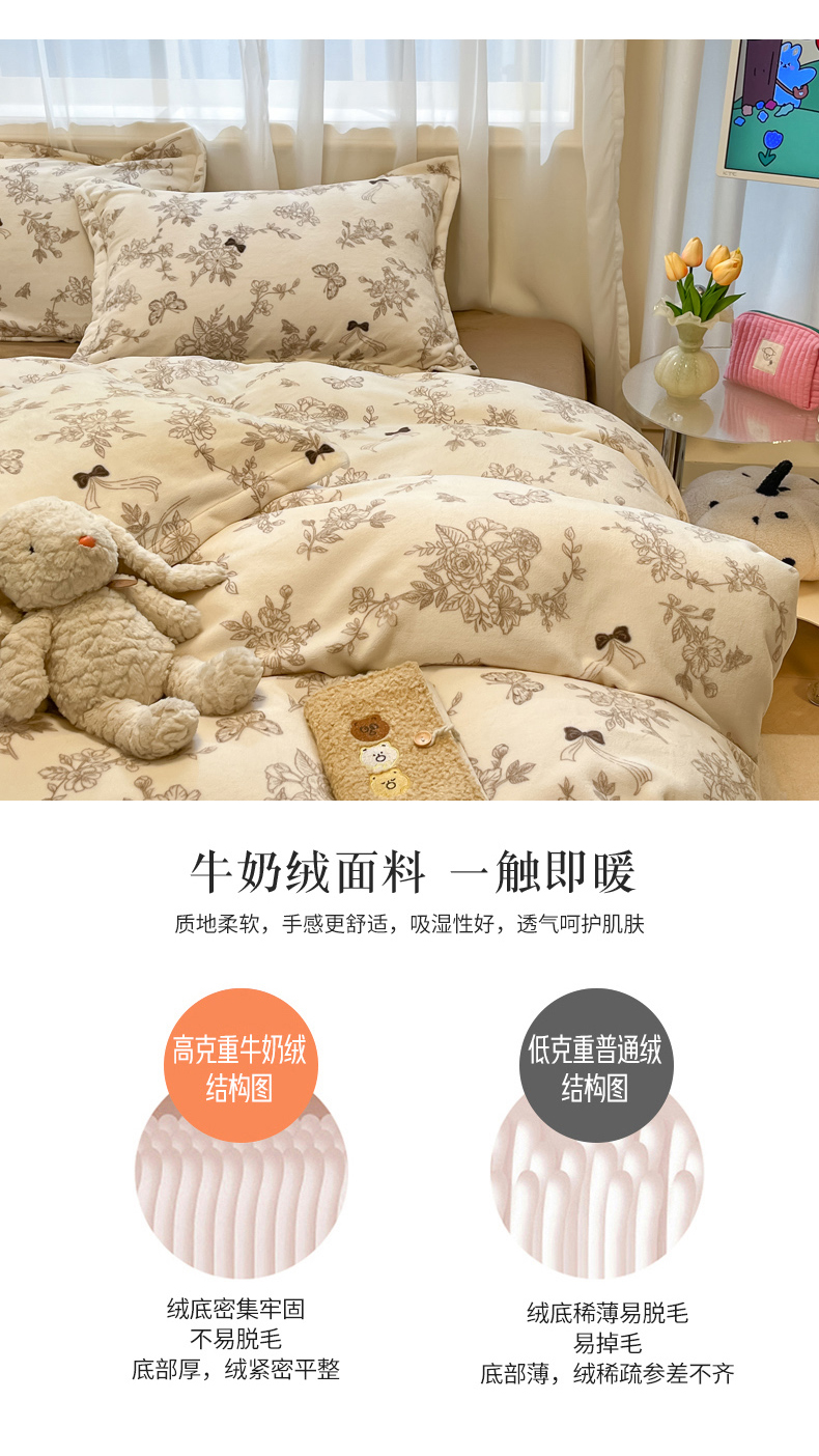 商品名称:慕尚家纺 2025新款田园花卉类印花牛奶绒高克重单被套 丽娜