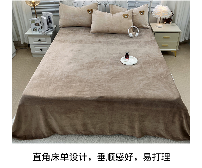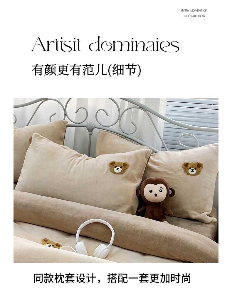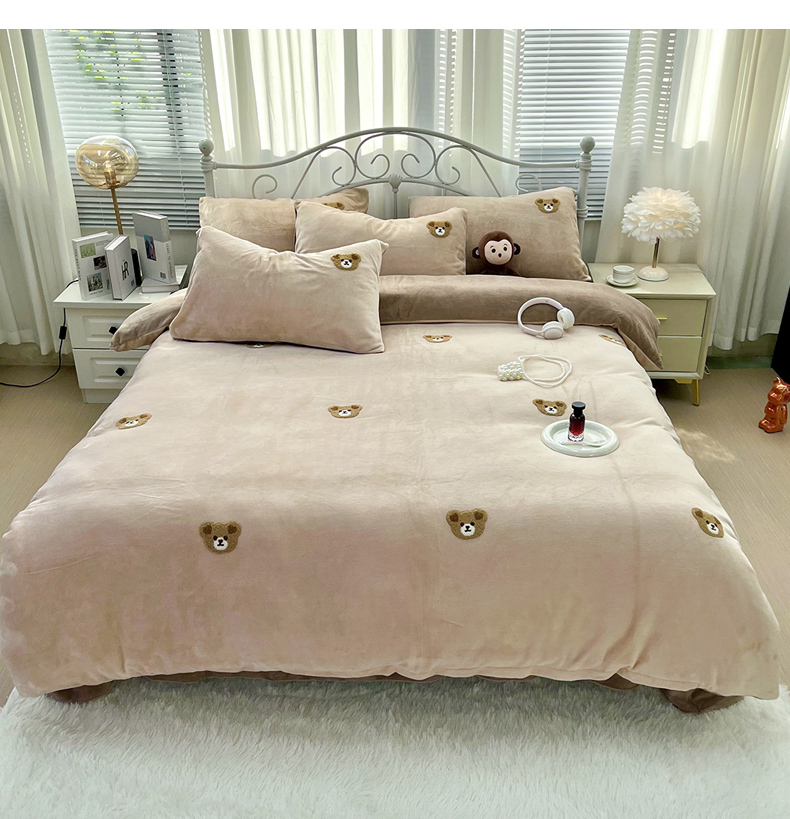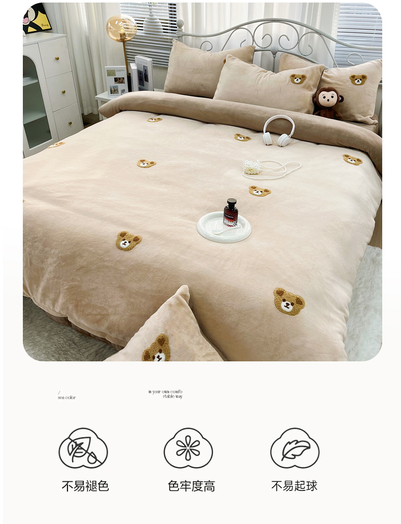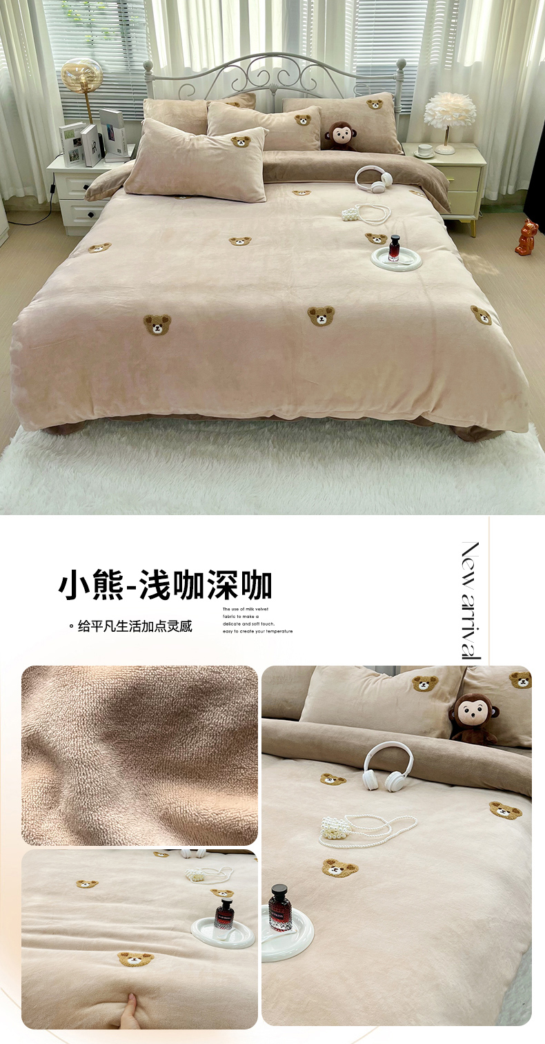 商品名称:鑫利来家纺 2025新款牛奶绒毛巾绣四件套 小熊-浅咖深咖