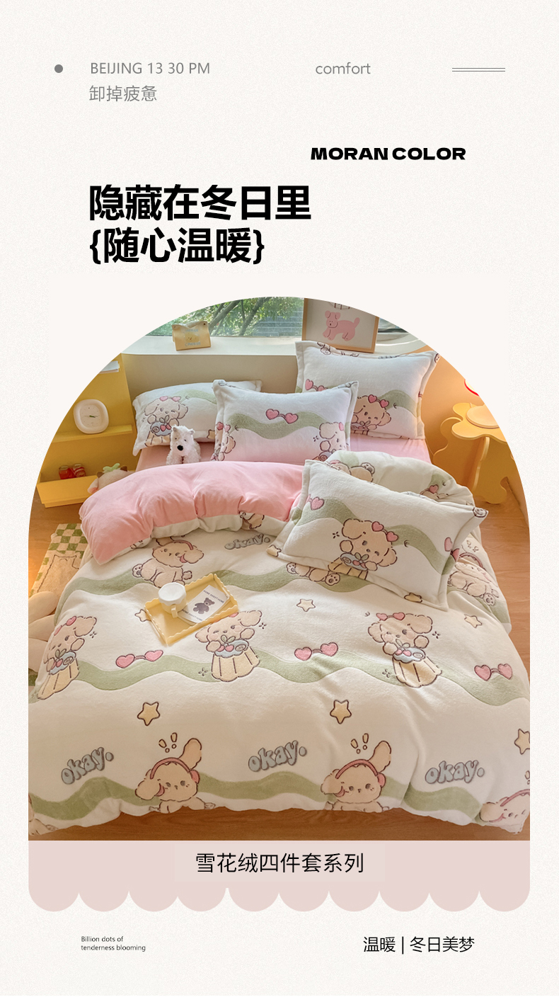 (总)慕尚家纺 2025新款豆豆绒刺绣四件套,大耳狗 白蓝,玫瑰 白粉