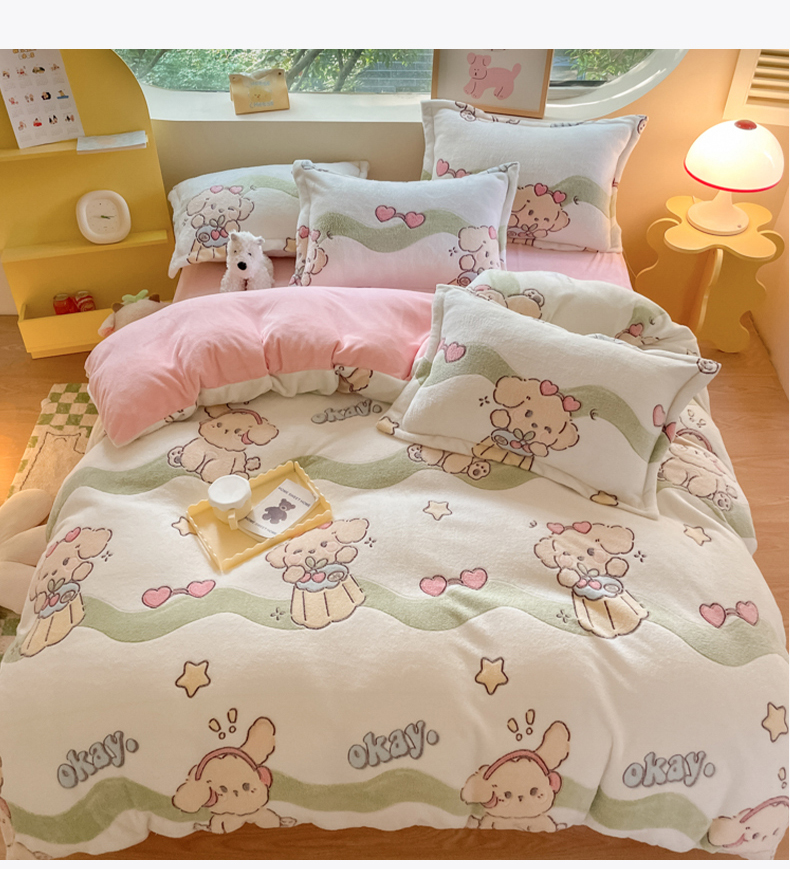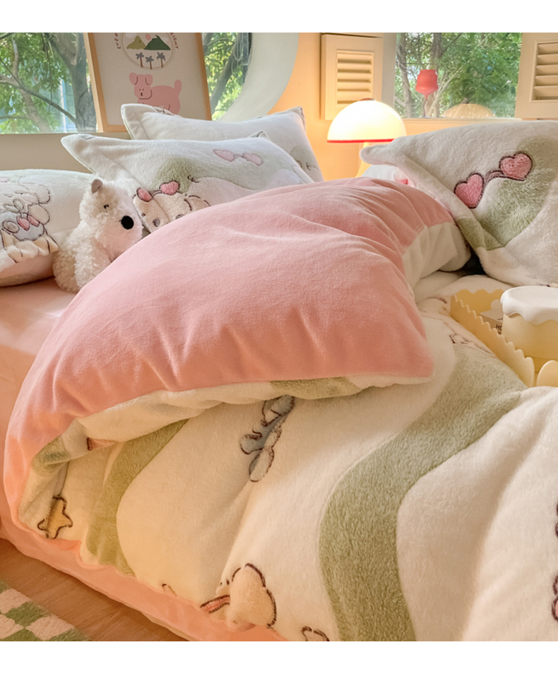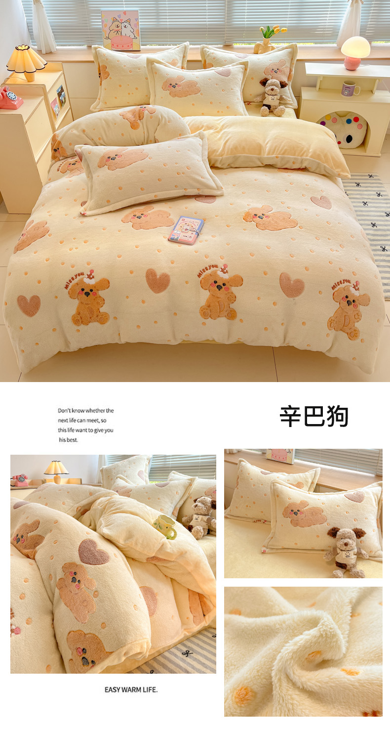 商品名称:慕尚家纺 2025新款高克重印花雪花绒被套单件 爱心狗