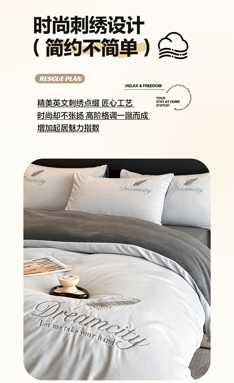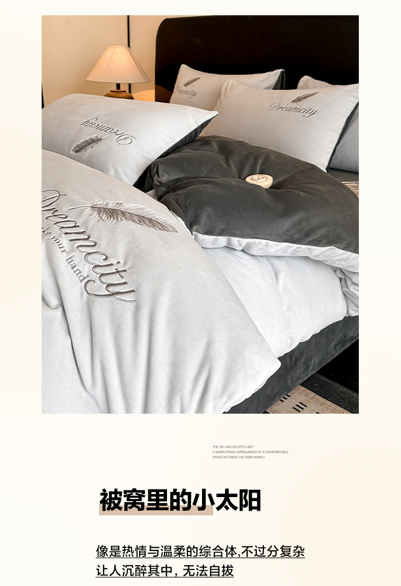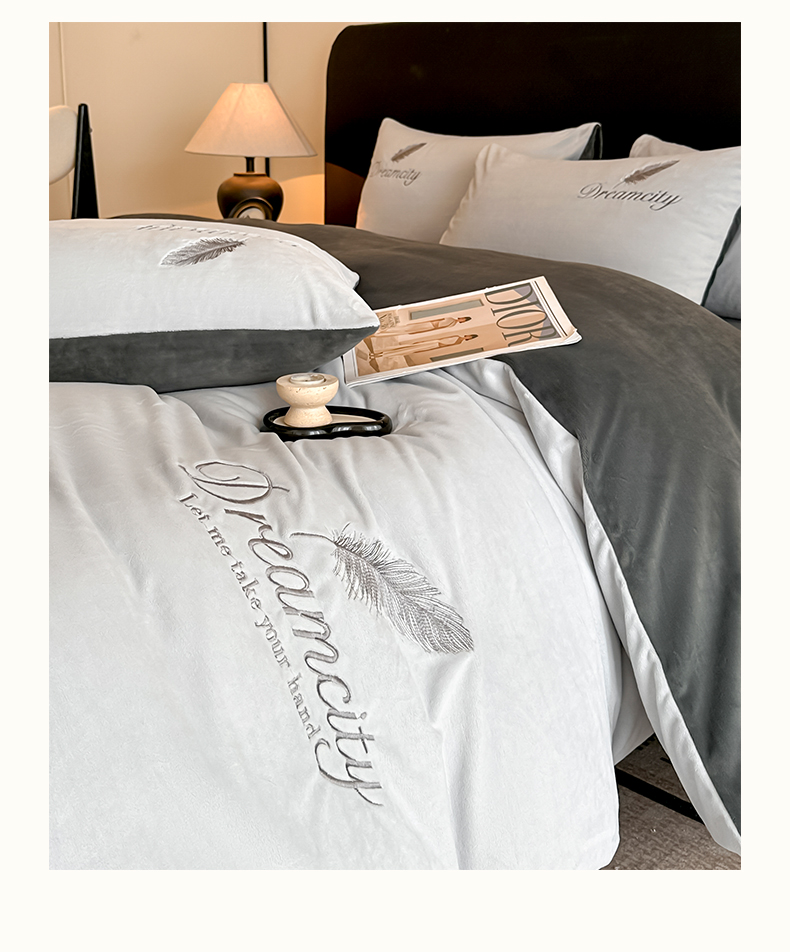 当前位置: 91家纺网 > 商品网购 > 床品套件 > 四件套 > 水晶绒四件套 > 如一 2025新款水晶绒双拼刺绣四件套轻羽系列-系列二 轻羽-典雅灰