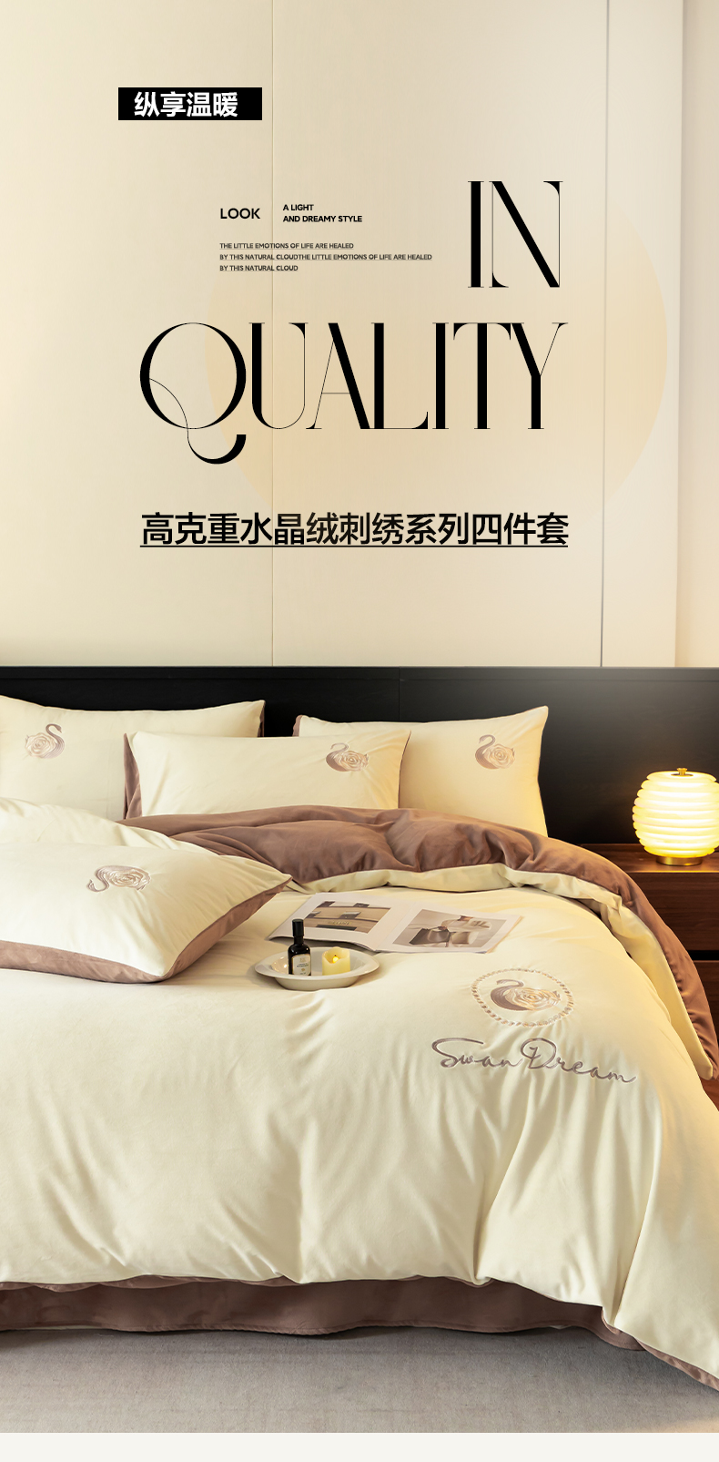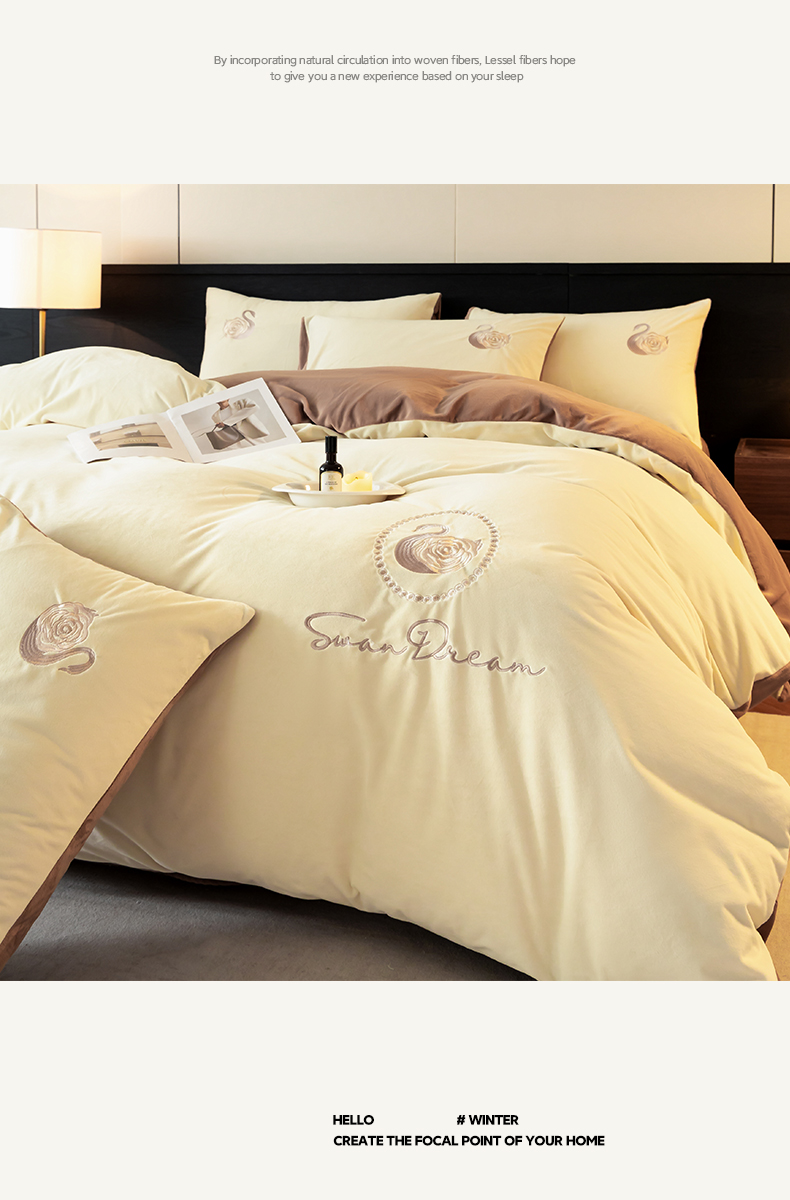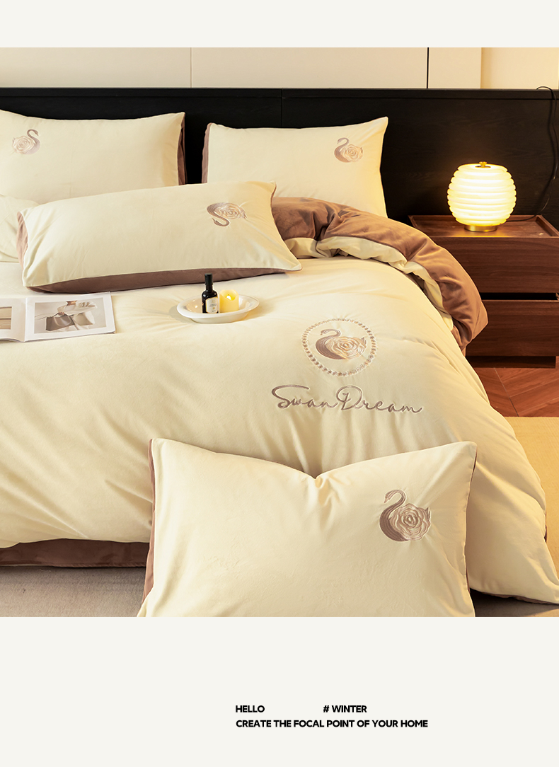 当前位置: 91家纺网 > 商品网购 > 床品套件 > 四件套 > 水晶绒四件套 > 如一 2025新款水晶绒双拼刺绣四件套-天鹅 天鹅-奶昔白