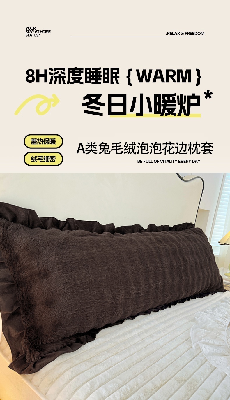 • 91家纺网 家纺一手货源 找家纺 梦舒羽 2025新款兔毛绒花边双人枕套牛奶绒加长情侣枕芯套雪花绒枕头套-泡泡 兔毛绒泡泡花边款-咖啡色