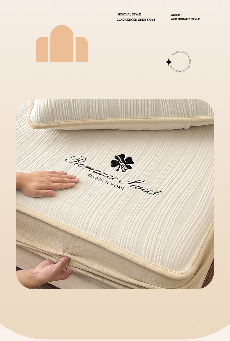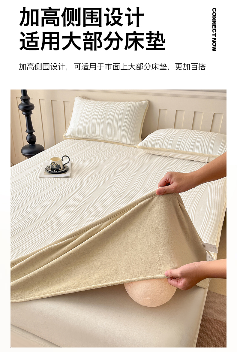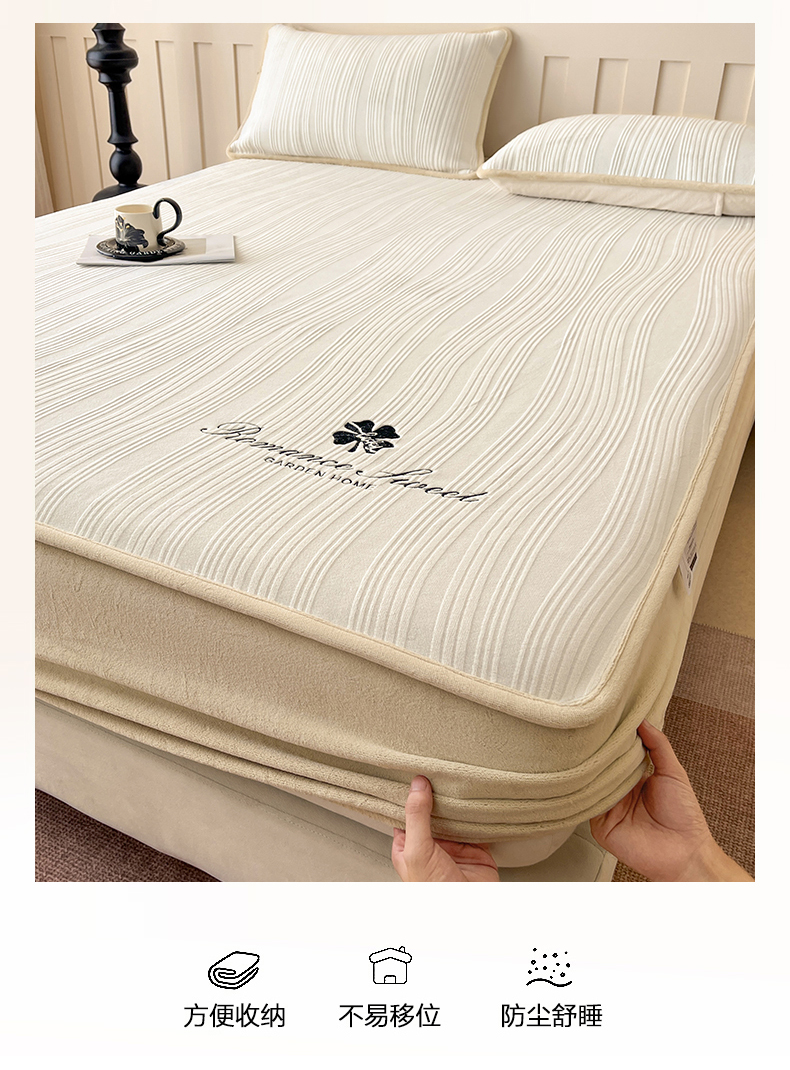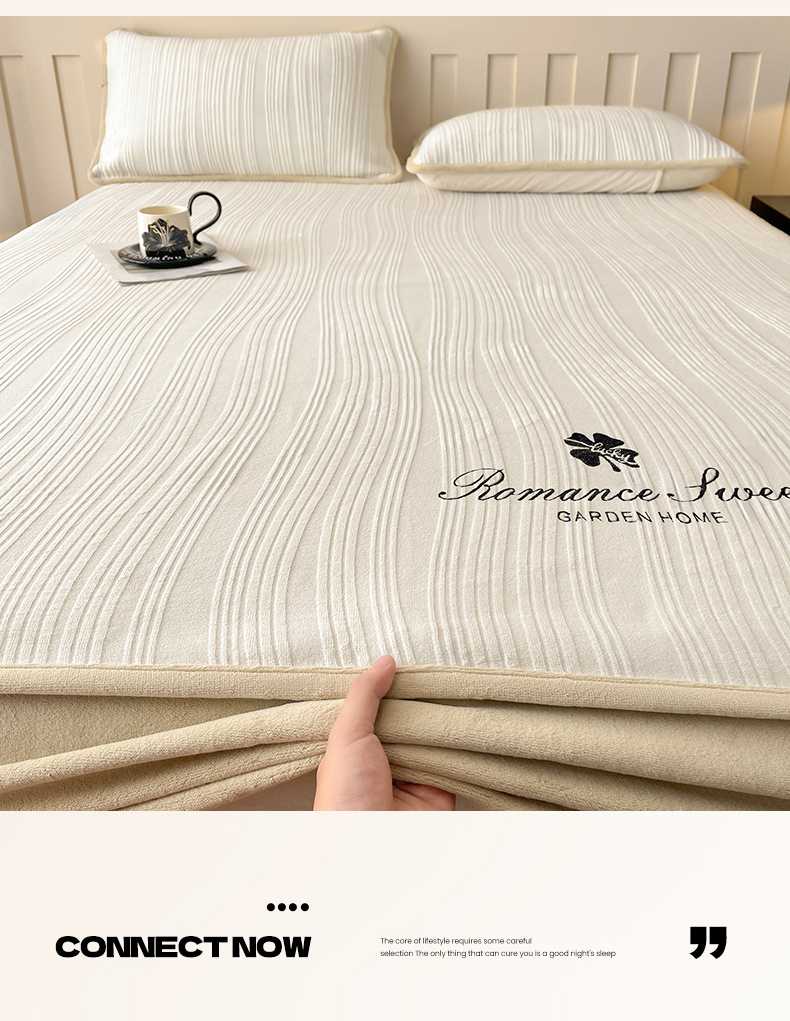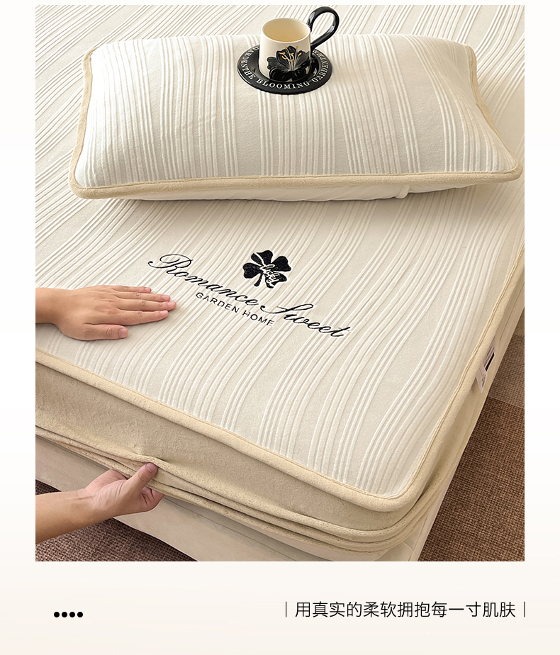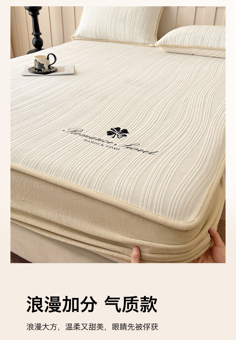 笙意家纺 2025新款A类加厚牛奶绒烂花复合床笠 花韵-奶白
