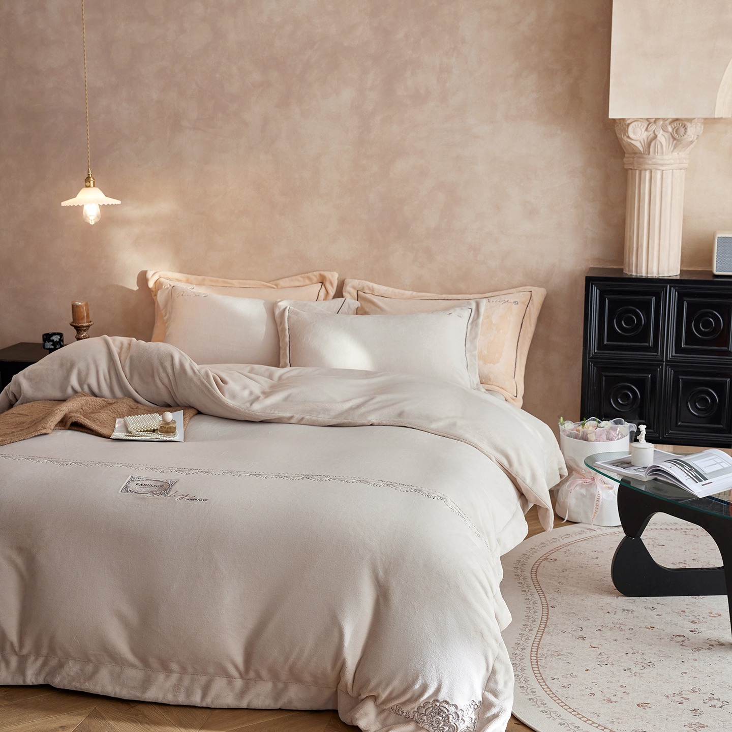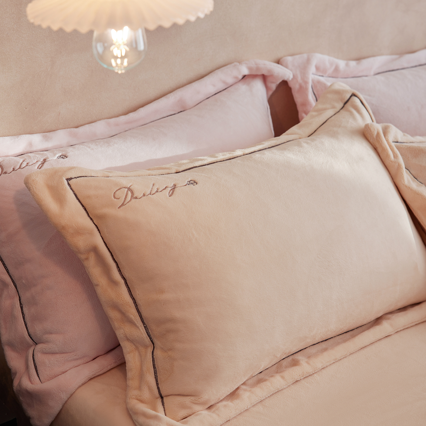 商品名称:蓝梦 2025新款亲肤舒适牛奶绒四件套-蔓蒂丝系列 梦想粉