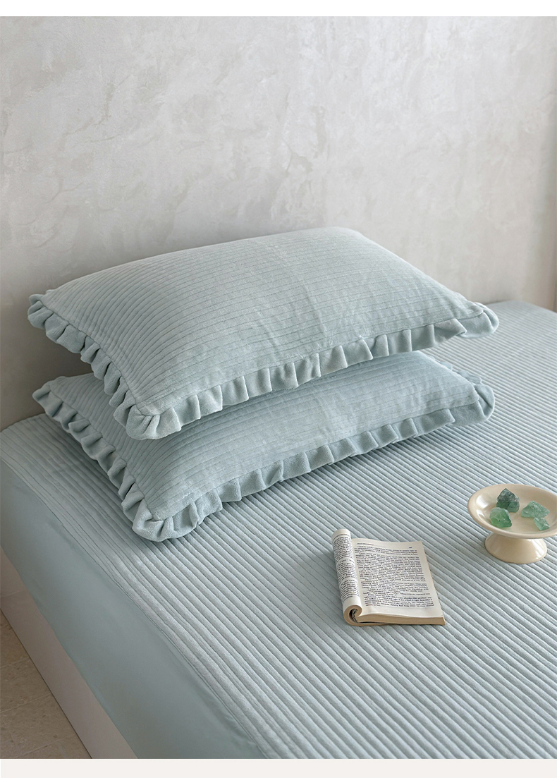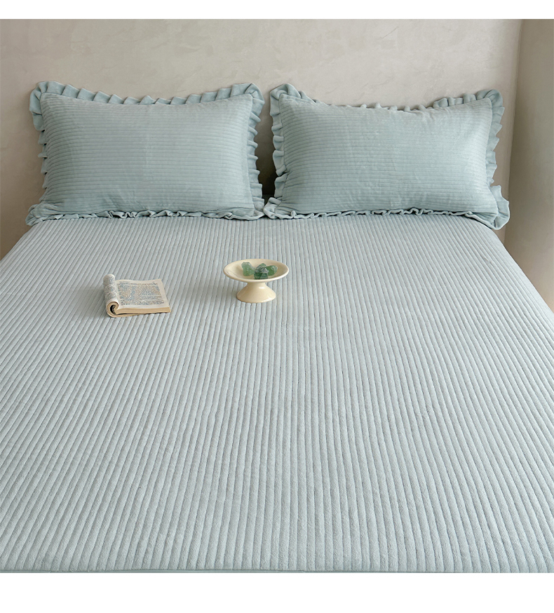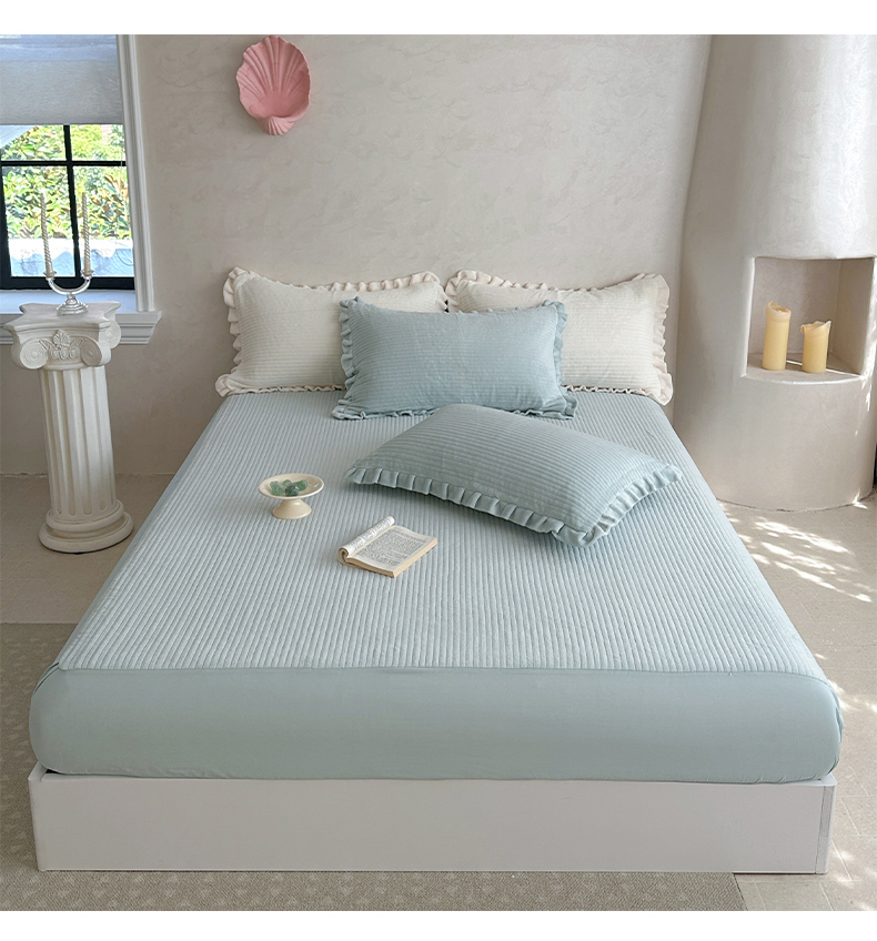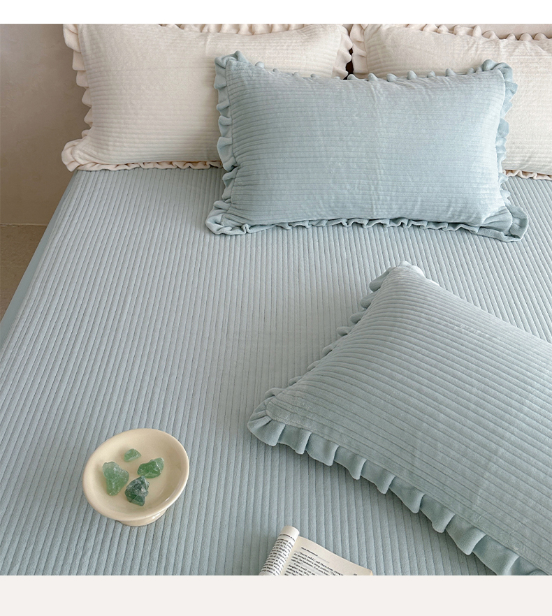 琳可家居 2025新款纯色消光高克重牛奶绒夹棉床笠保暖加厚床笠三件套(提供买家秀) 海盐蓝-床笠款