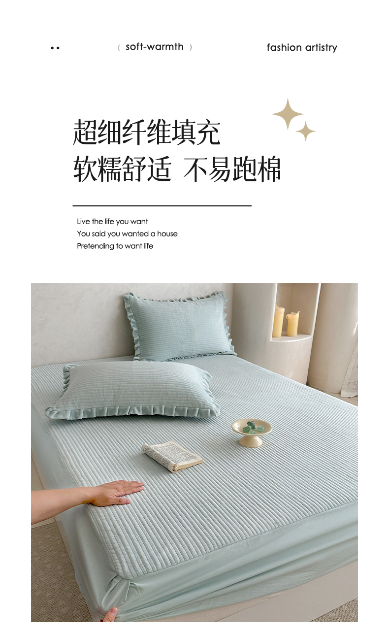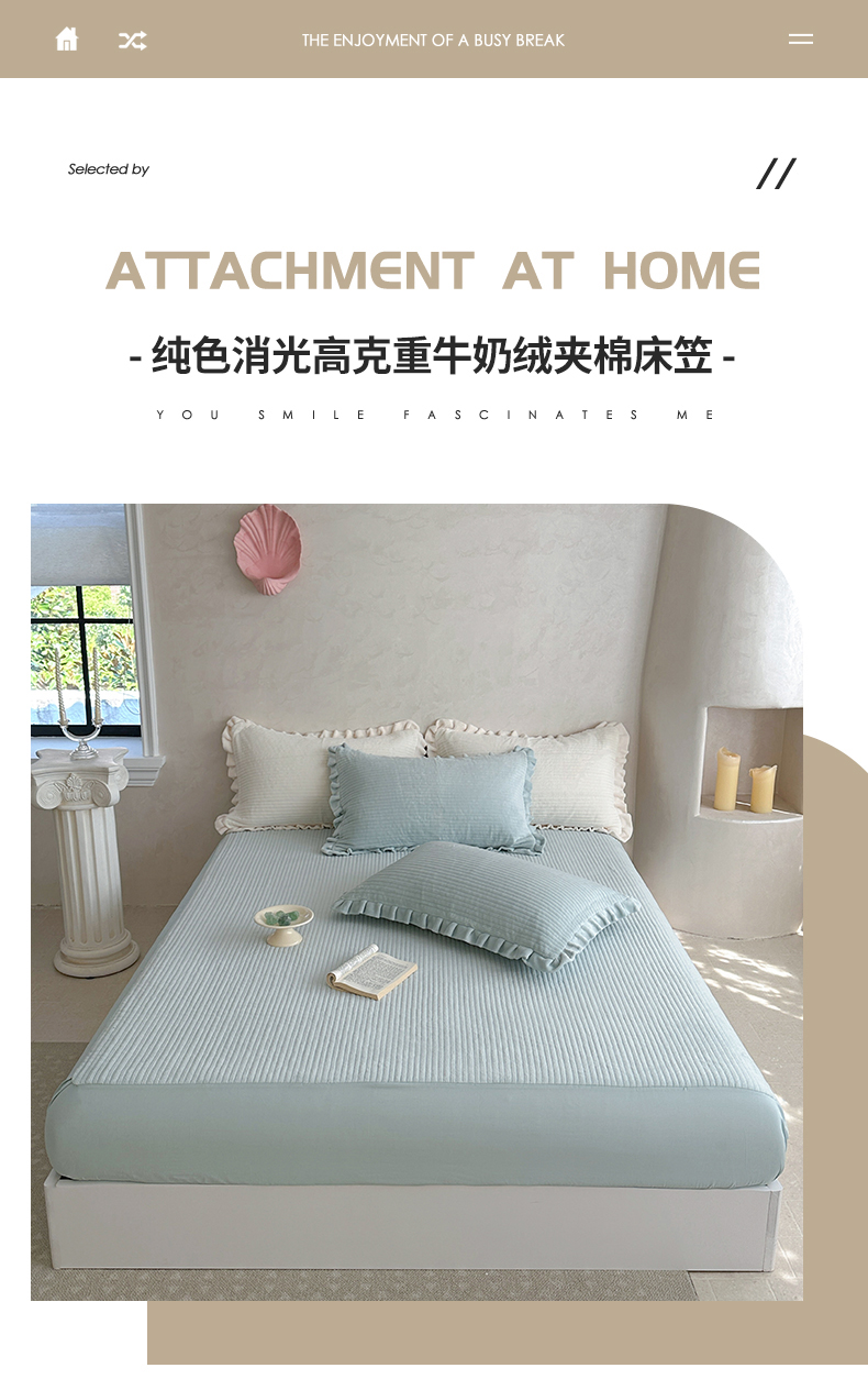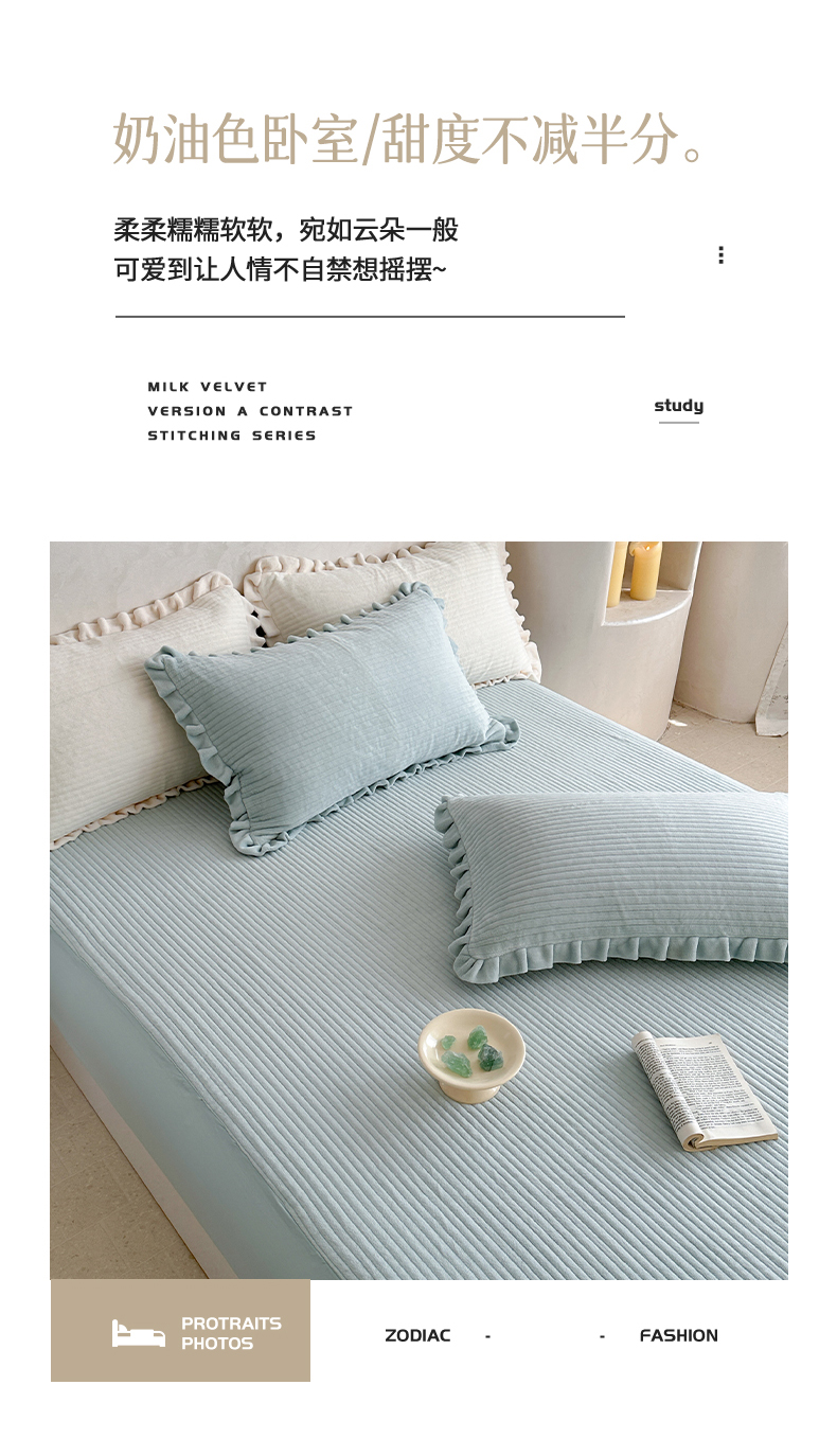 • 91家纺网 家纺一手货源 找家纺 琳可家居 2025新款纯色消光高克重牛奶绒夹棉床笠保暖加厚床笠三件套(提供买家秀) 海盐蓝-床笠款