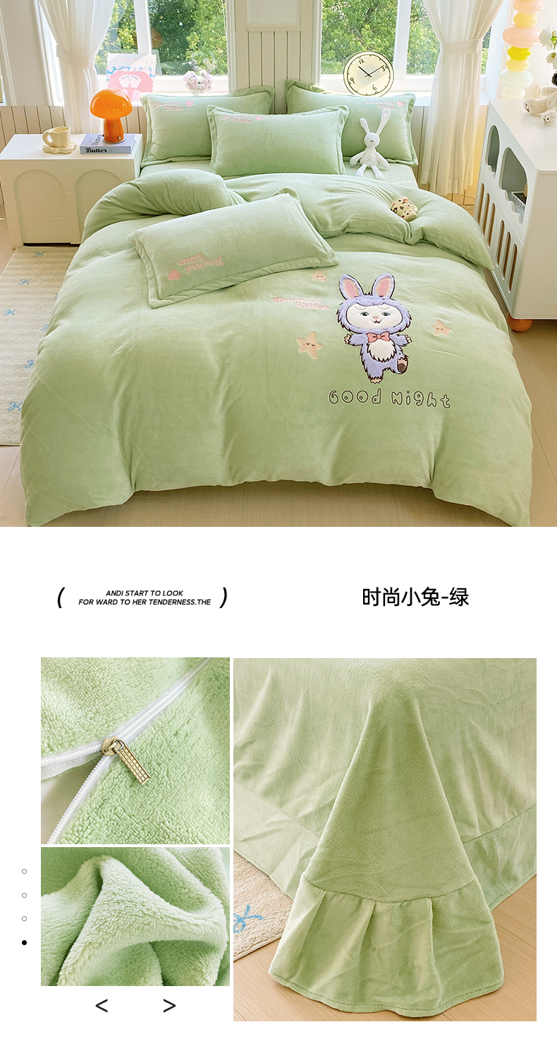 当前位置: 91家纺网 > 商品网购 > 床品套件 > 四件套 > 牛奶绒四件套 > 悦织湾家纺 牛奶绒四件套纯色贴布绣床单款床盖款床上用品四件套时尚小兔2025新款加厚 床单款时尚小兔-绿