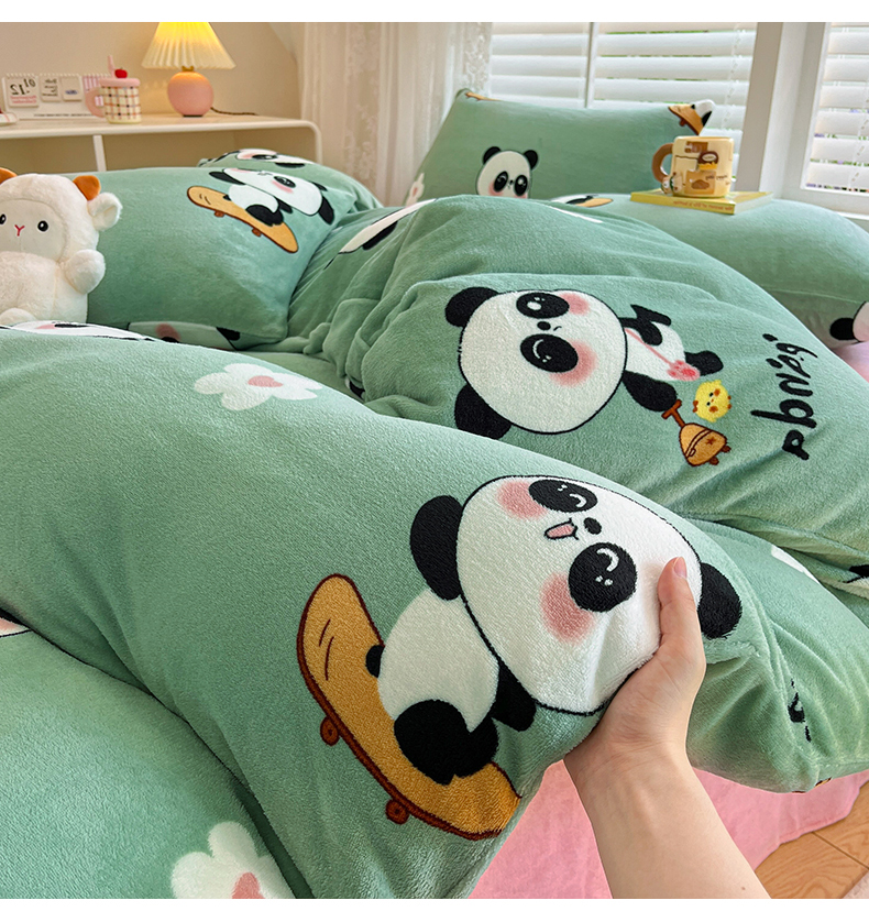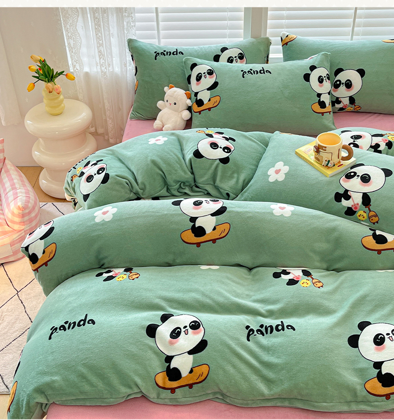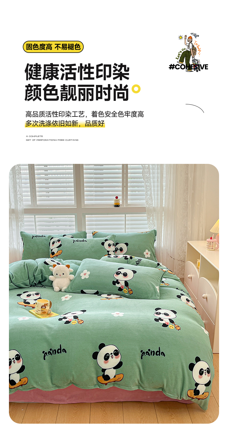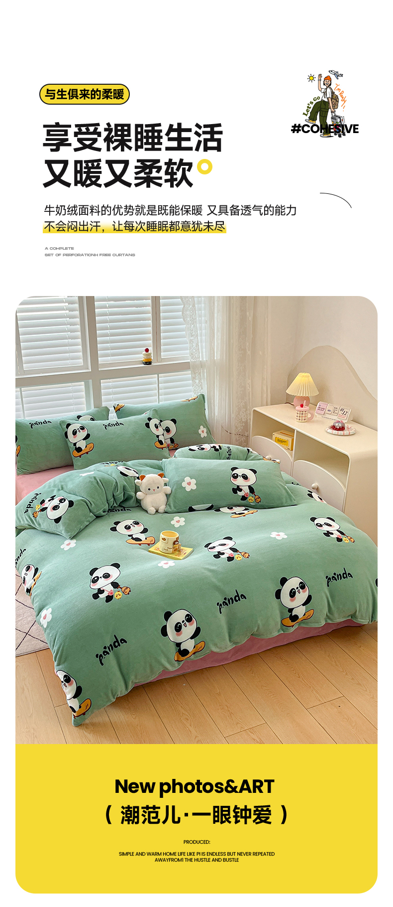 当前位置: 91家纺网 > 商品网购 > 床品套件 > 四件套 > 牛奶绒四件套 > 蓝梦 2025新款加厚保暖牛奶绒印花四件套 熊猫乐园-绿