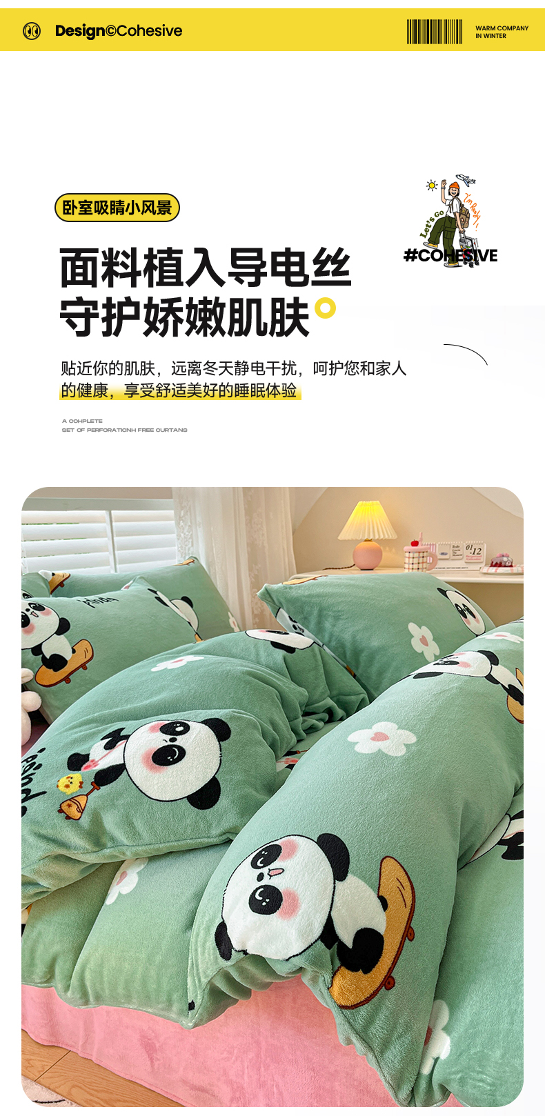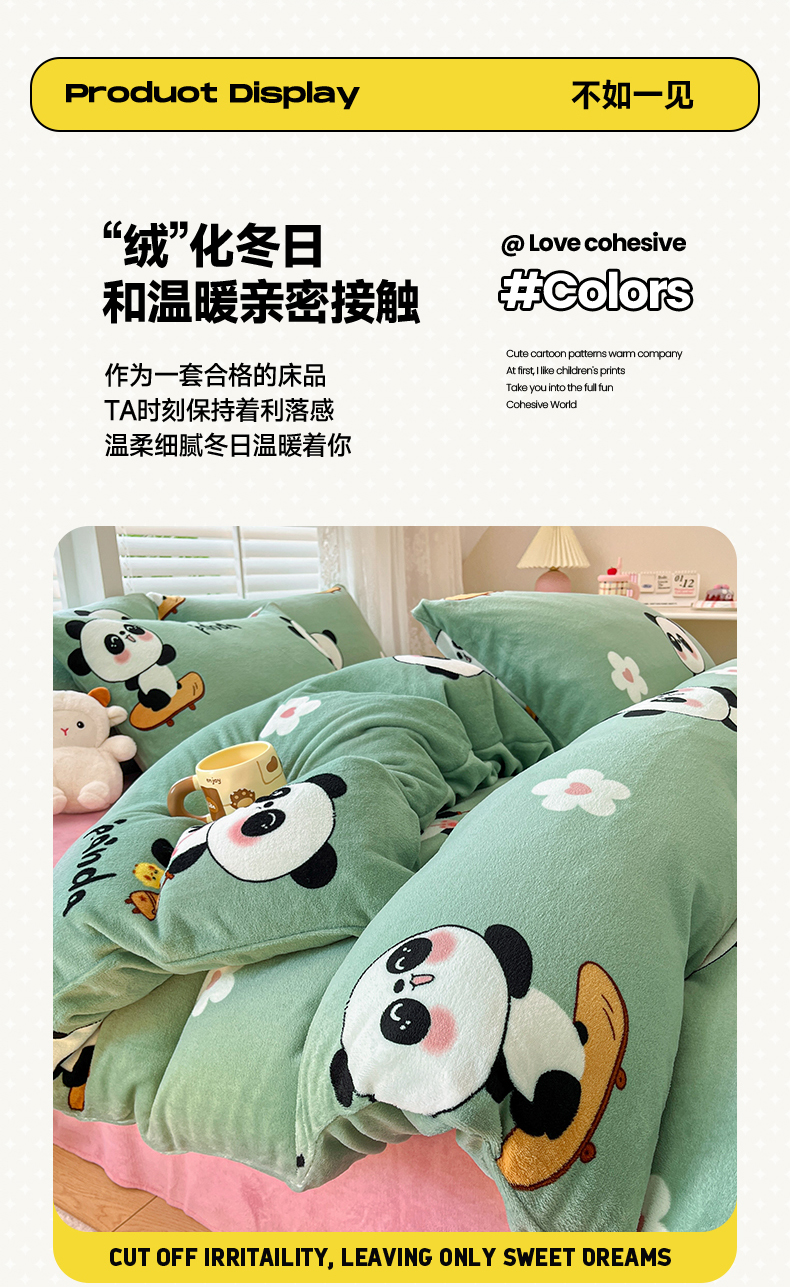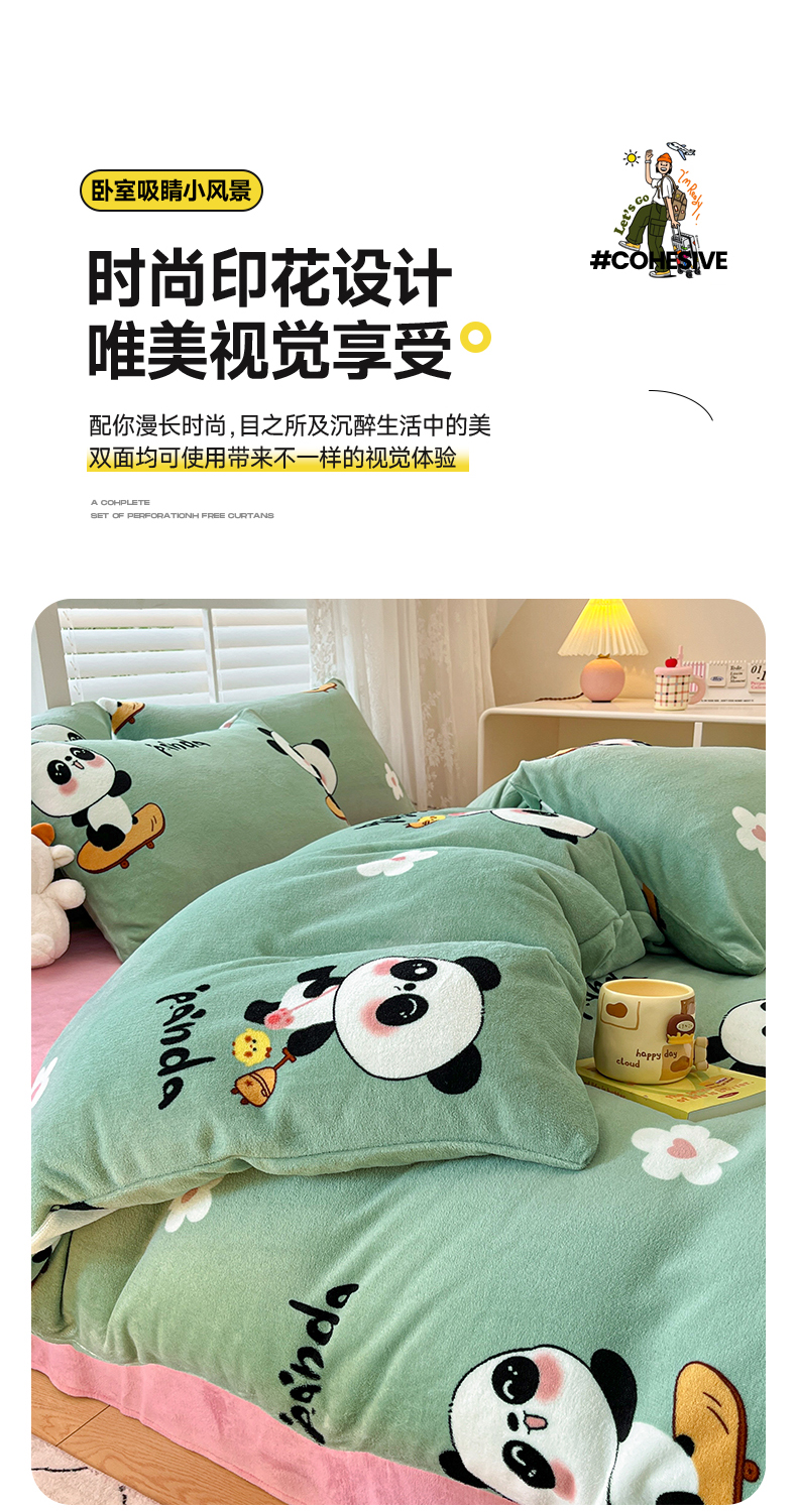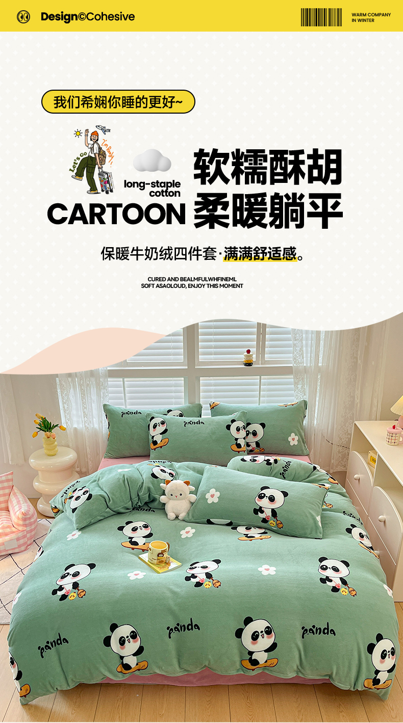 当前位置: 91家纺网 > 商品网购 > 床品套件 > 四件套 > 牛奶绒四件套 > 蓝梦 2025新款加厚保暖牛奶绒印花四件套 熊猫乐园-绿