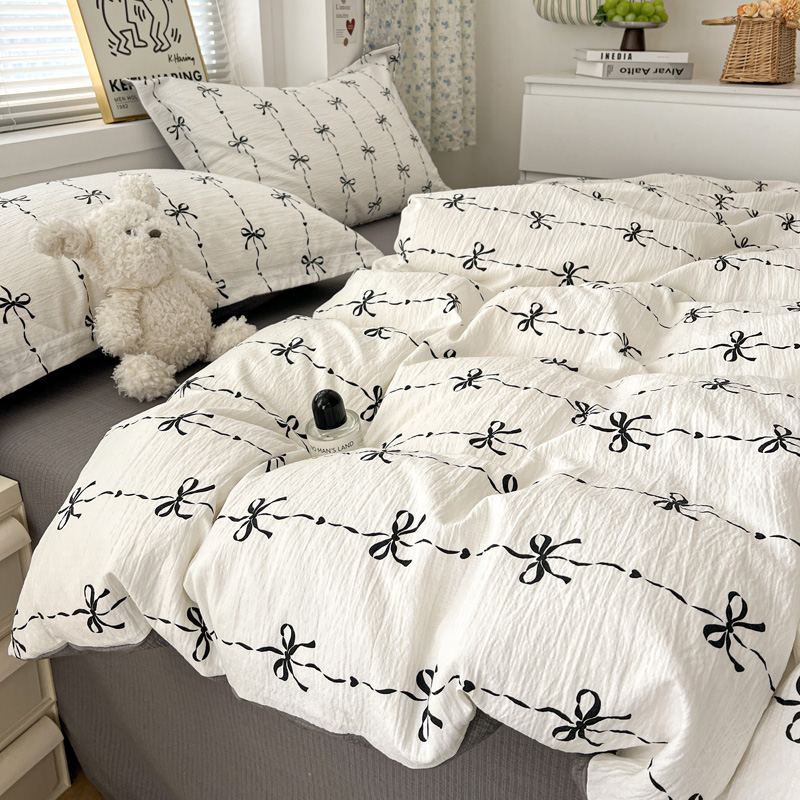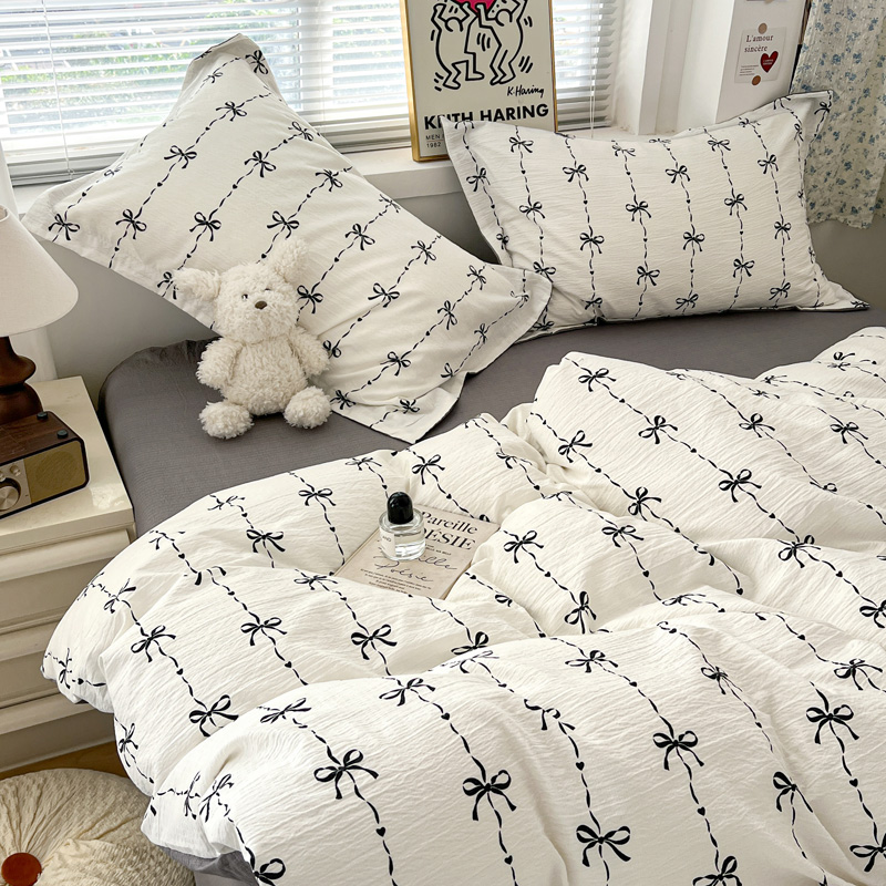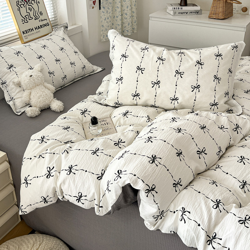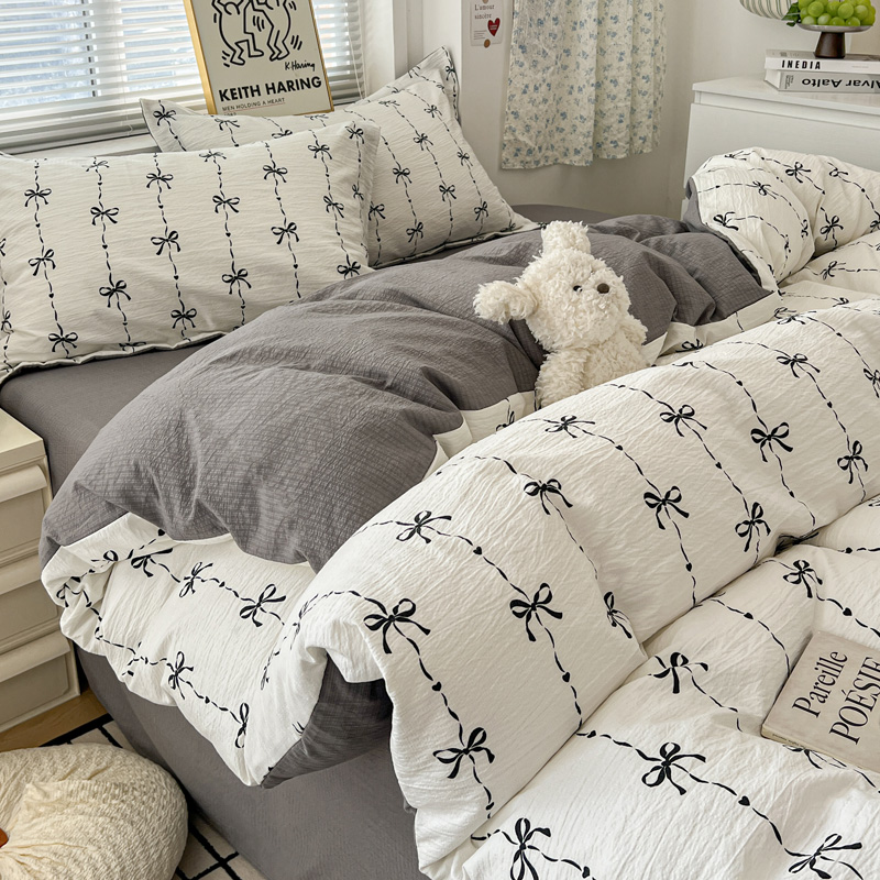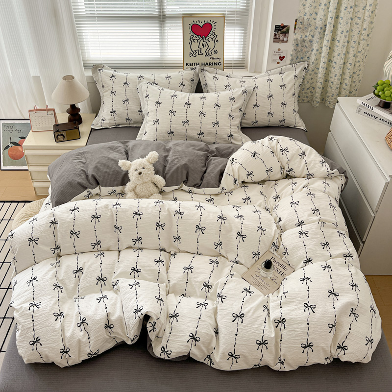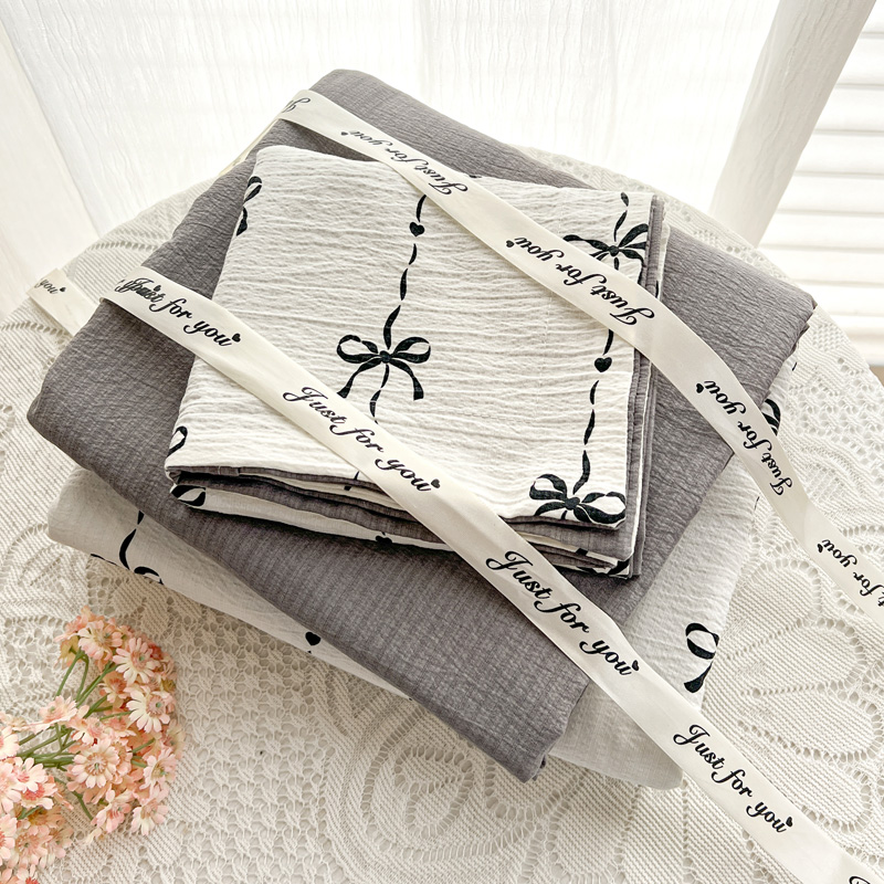 一比一 2025新款古法水洗棉小布袋高克重云柔棉四件套 线条蝴蝶结