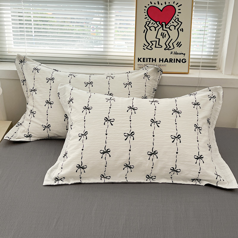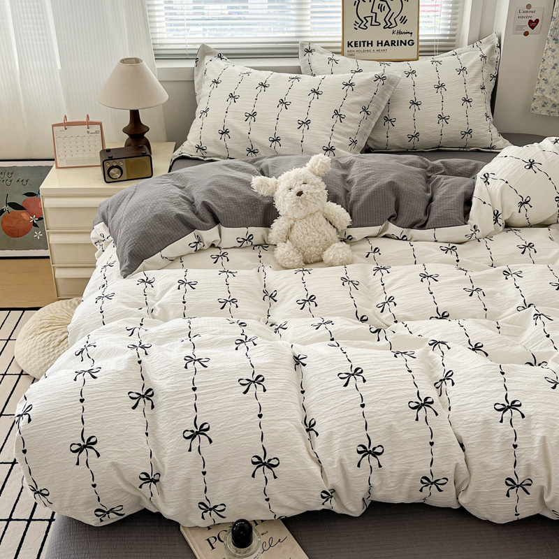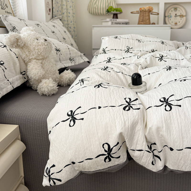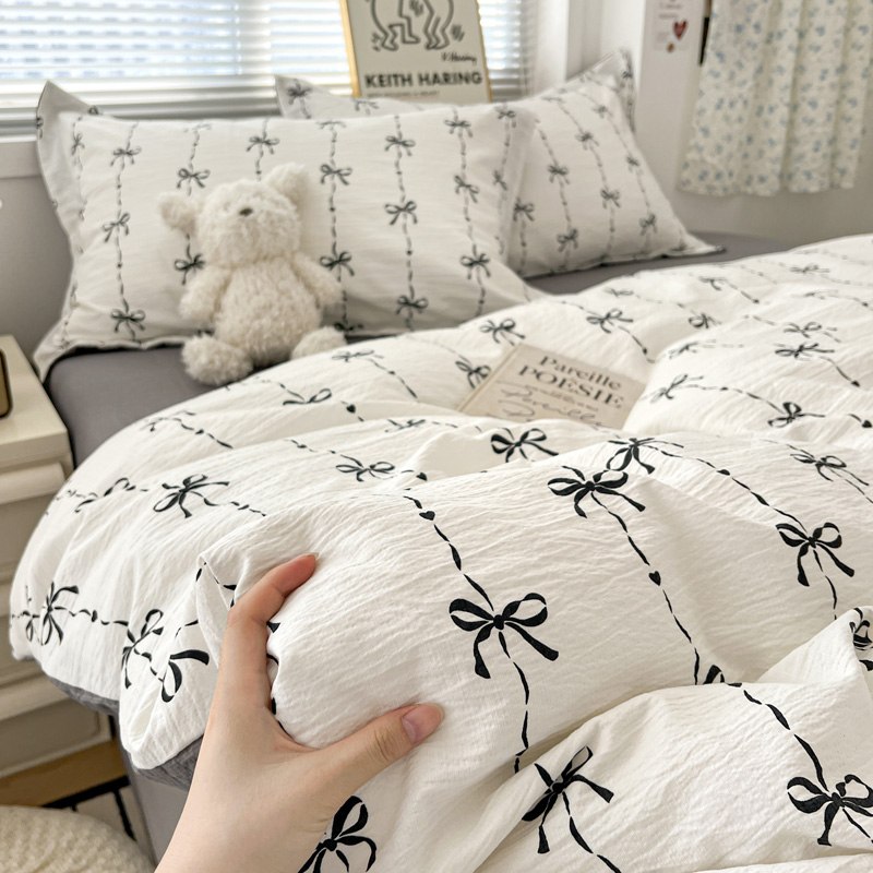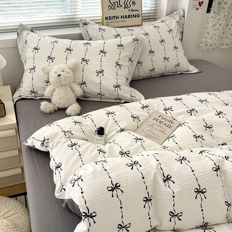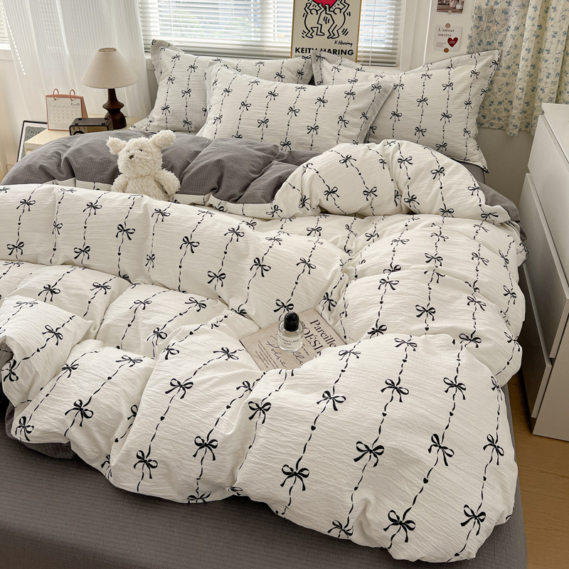 一比一 2025新款古法水洗棉小布袋高克重云柔棉四件套 线条蝴蝶结