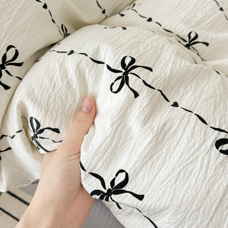 商品名称:一比一 2025新款古法水洗棉小布袋高克重云柔棉四件套 线条蝴蝶结
