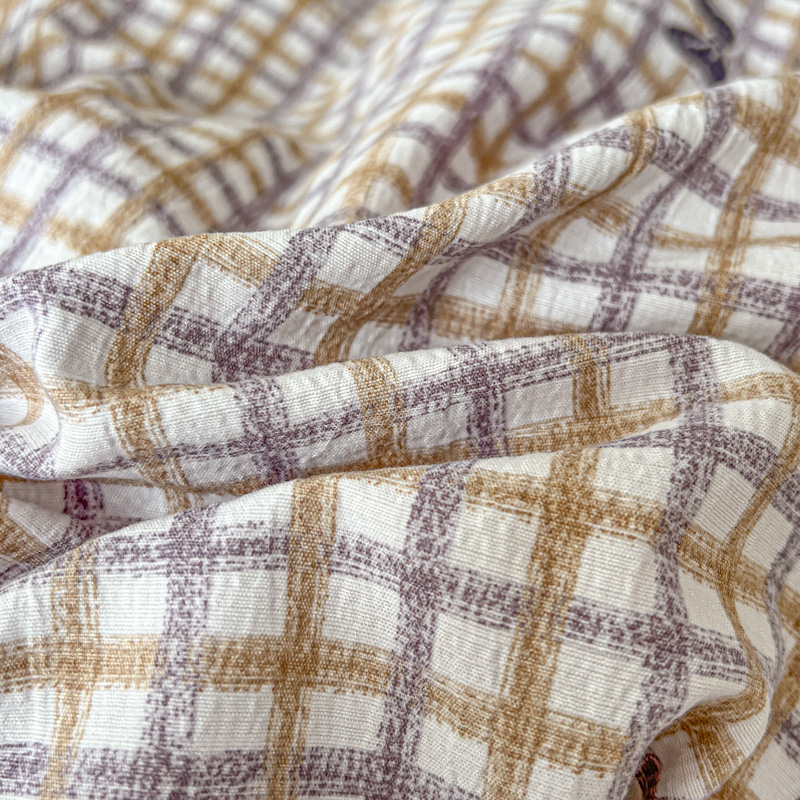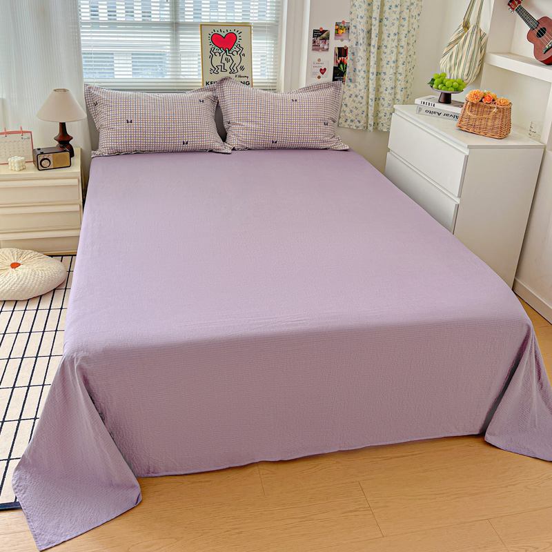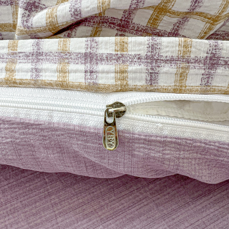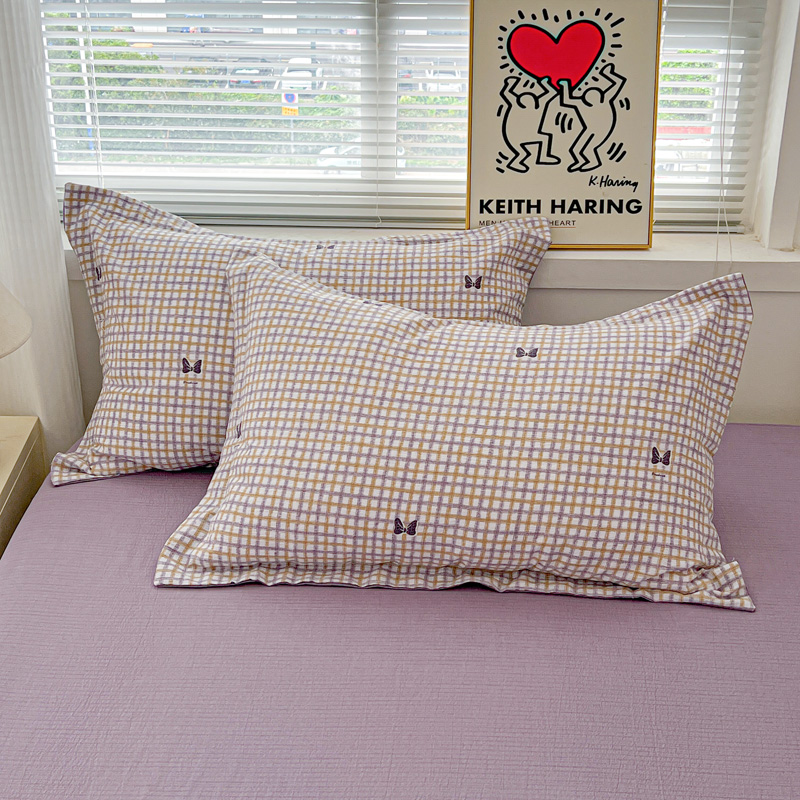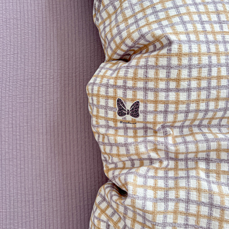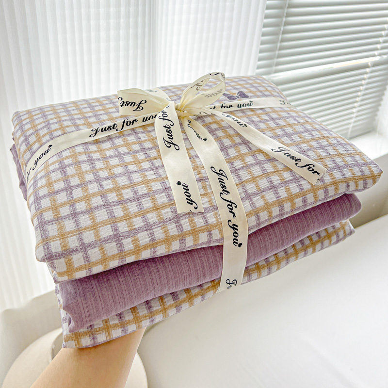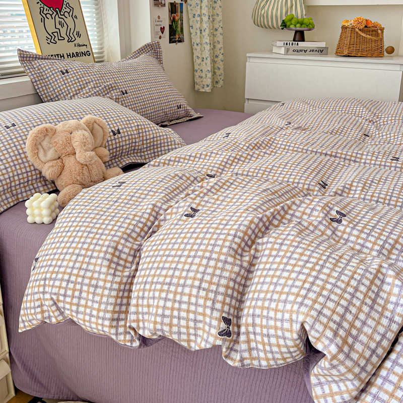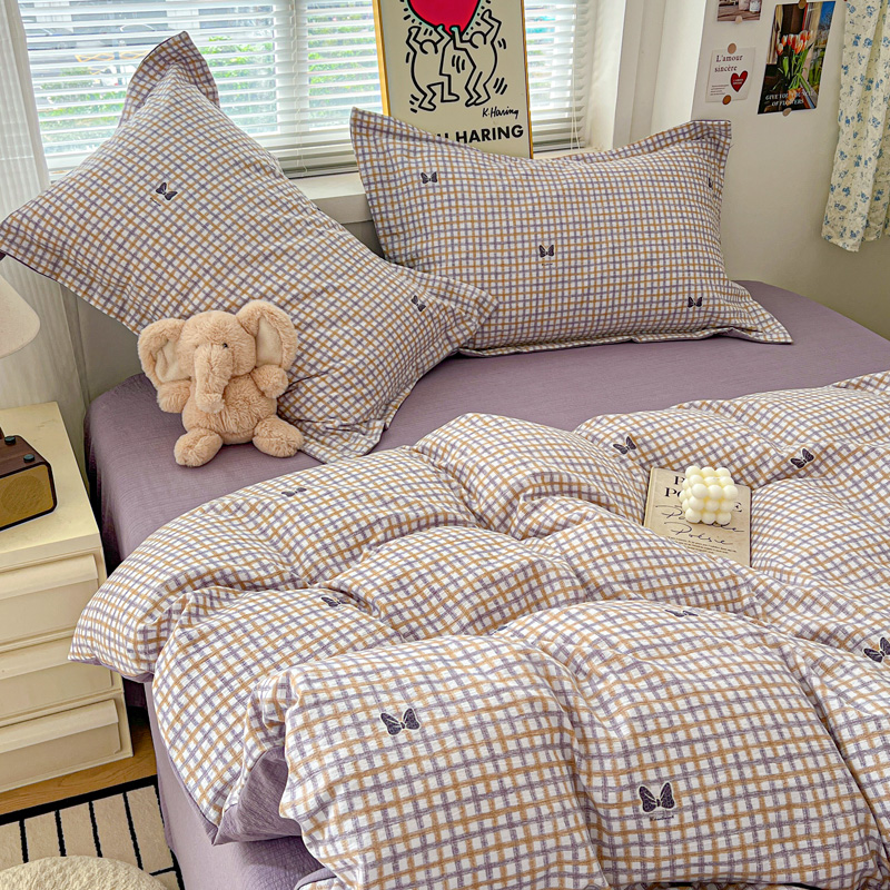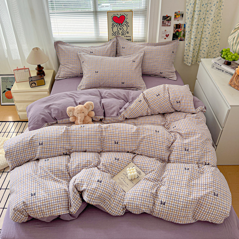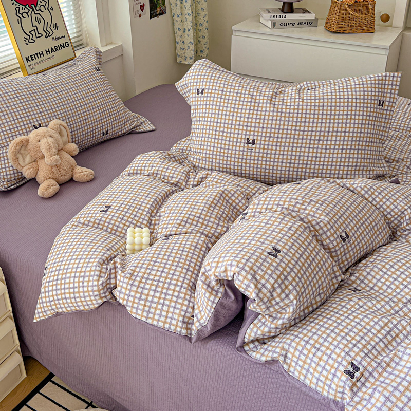 一比一 2025新款古法水洗棉小布袋高克重云柔棉四件套 格纹紫蝶