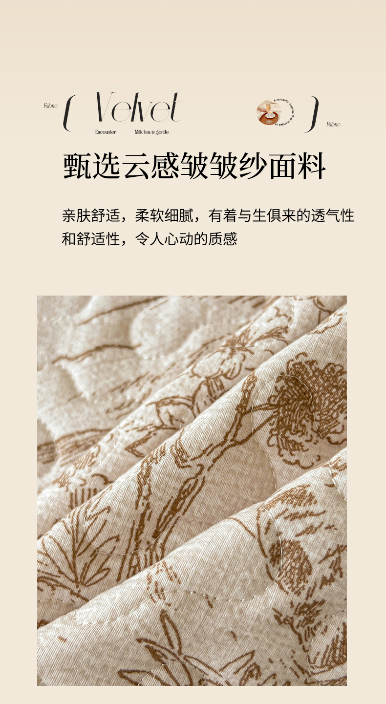 • 91家纺网 家纺一手货源 找家纺 笠裙家纺 2025新款a类加厚夹棉云感水洗棉床盖四件套 茶巷