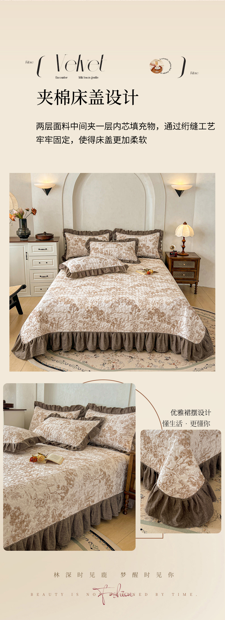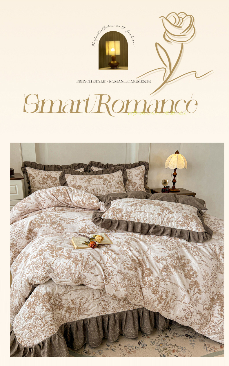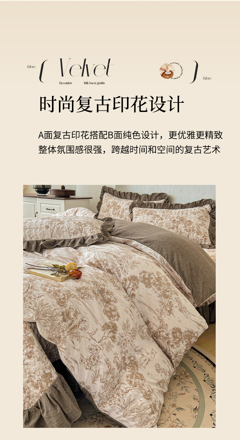 当前位置: 91家纺网 > 商品网购 > 床上用品 > 床盖 > 笠裙家纺 2025新款a类加厚夹棉云感水洗棉床盖四件套 茶巷