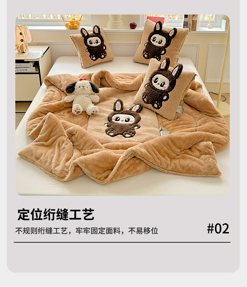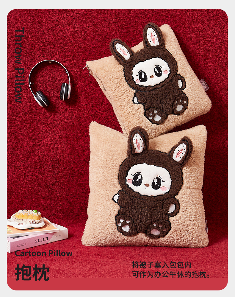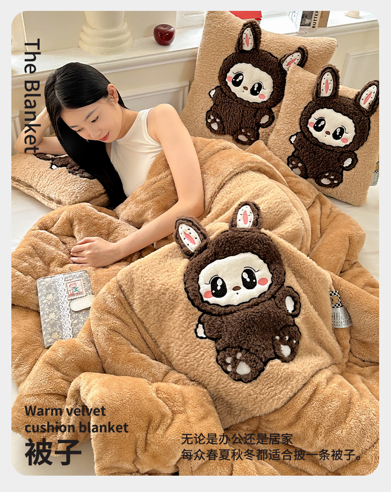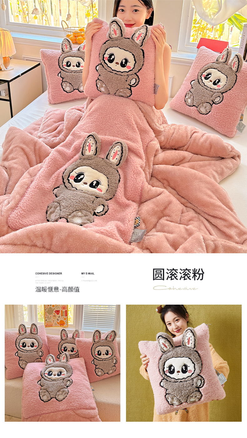 (总)古本家居 2026新款全棉胭脂兔抱枕被系列,全棉立体胭脂兔粉格,全棉立体胭脂兔蓝格,全棉立体胭脂兔绿格