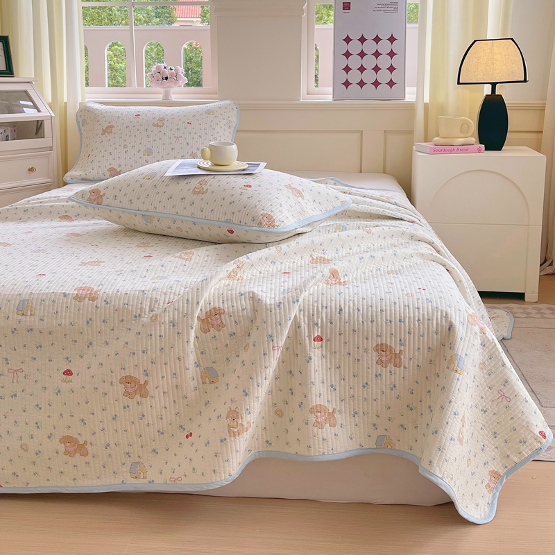 当前位置: 91家纺网 > 商品网购 > 床品套件 > 四件套 > 全棉普通四件套 > 金丝兔 2025新款小清新斜纹纯棉床盖 全棉夹棉床盖 床盖三件套 榻榻米抗盖绗缝加厚床单 樱花狗