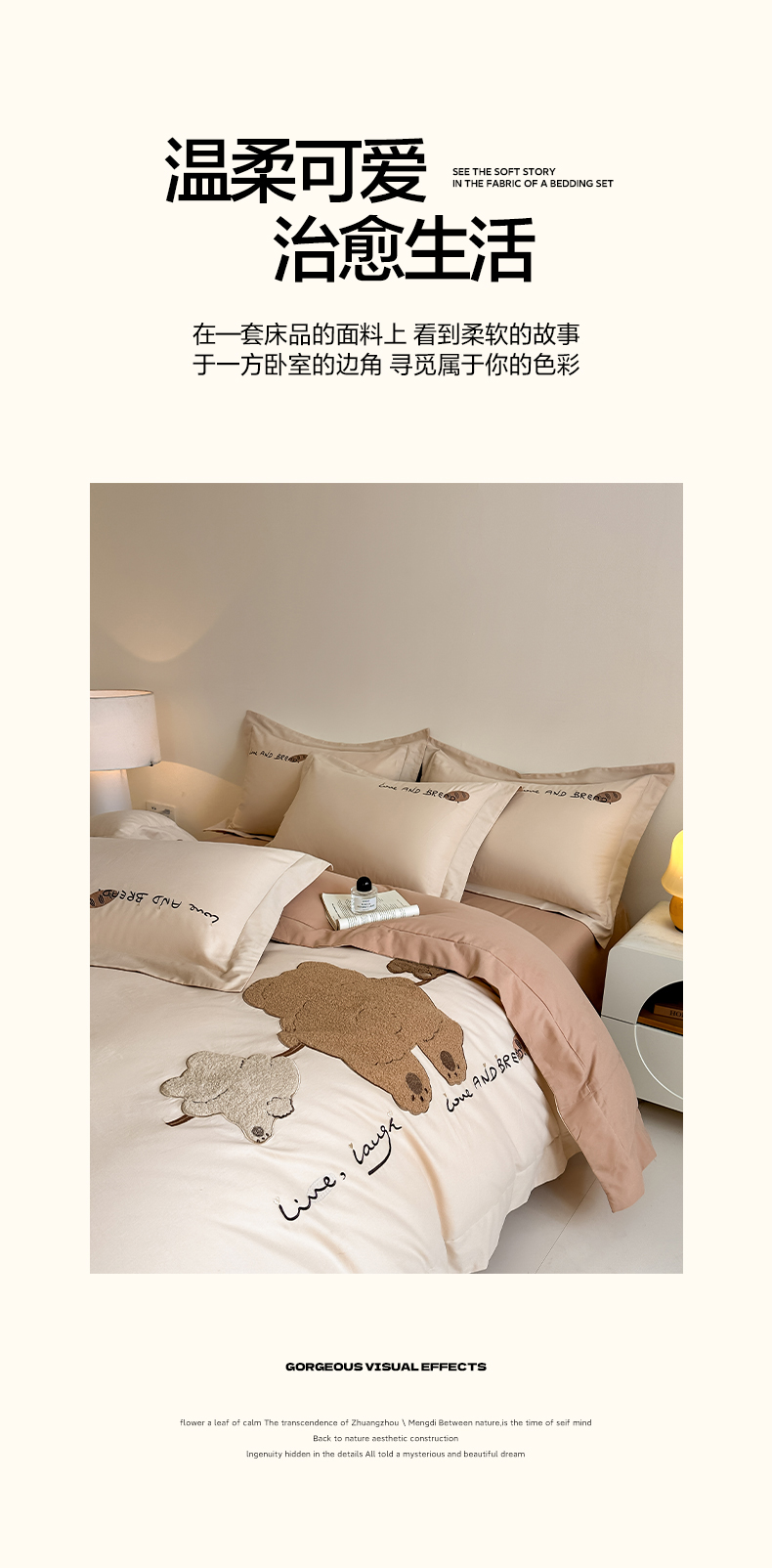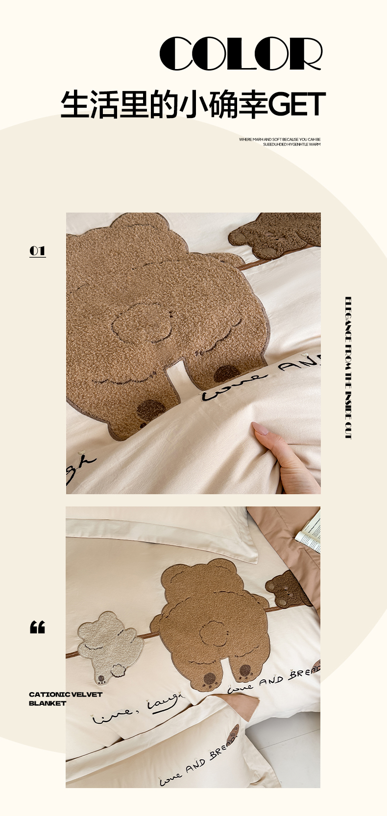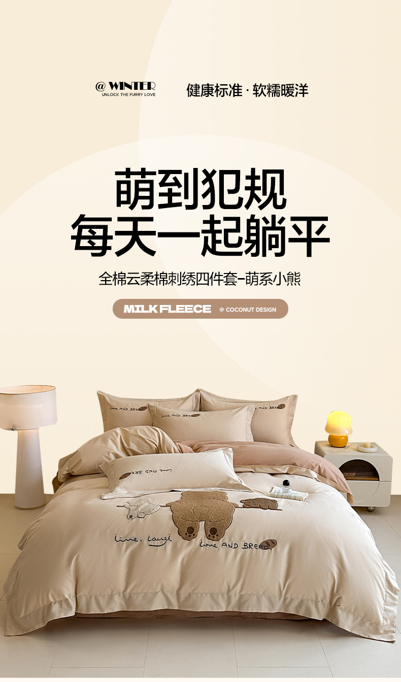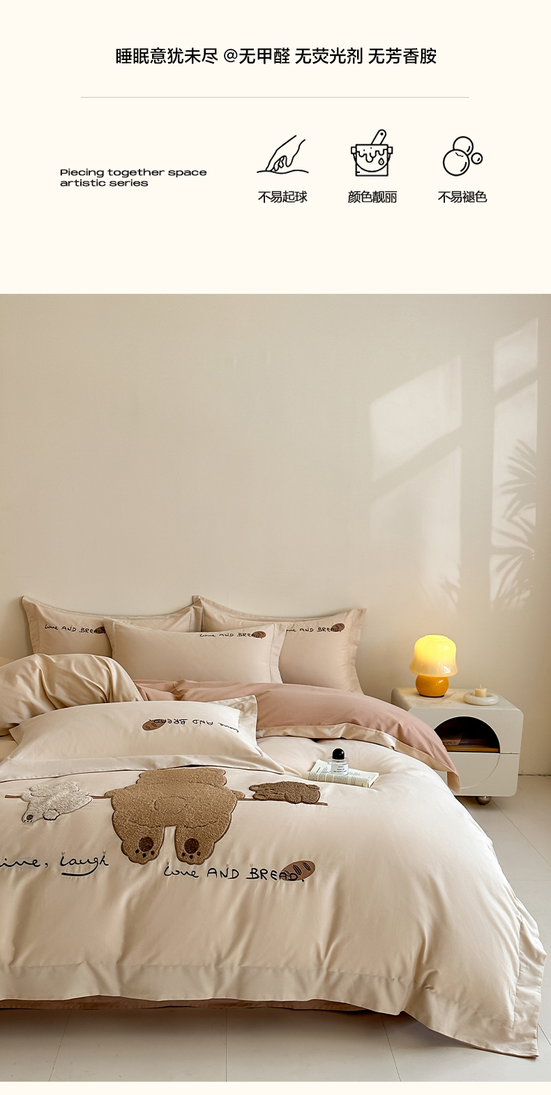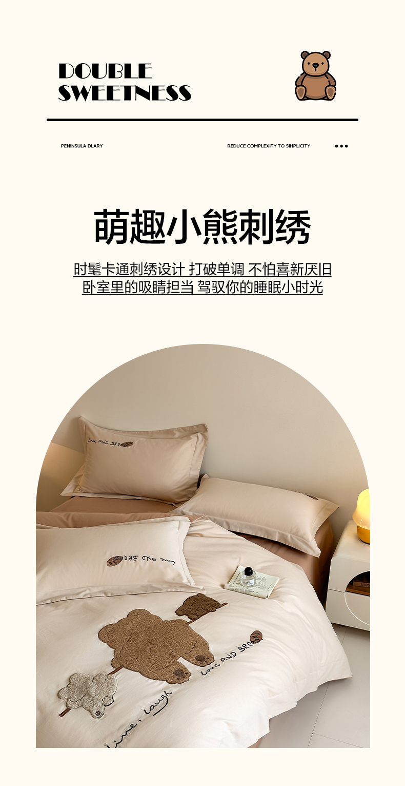 (总)蓝邻家纺 2025新款全棉高支云柔棉刺绣四件套-萌系小熊风系列