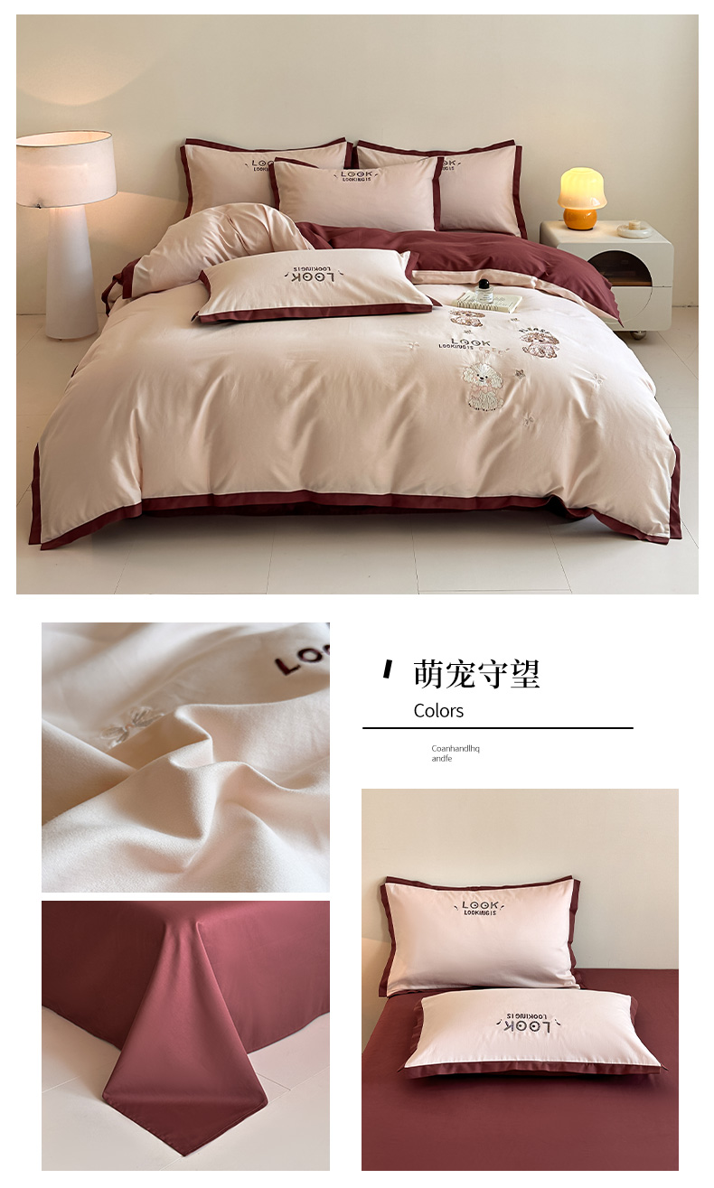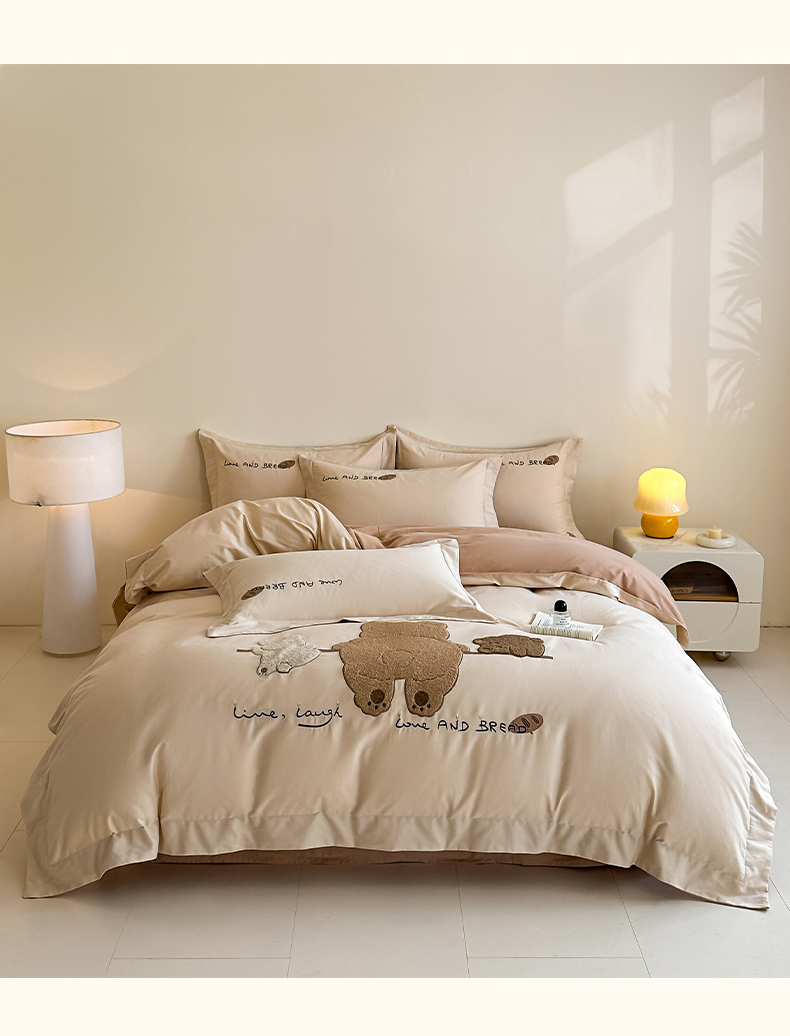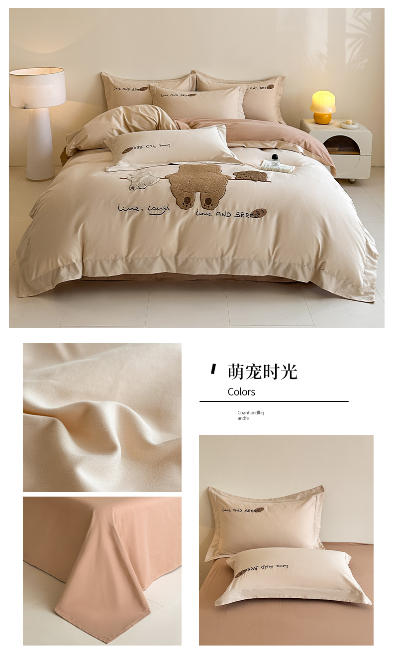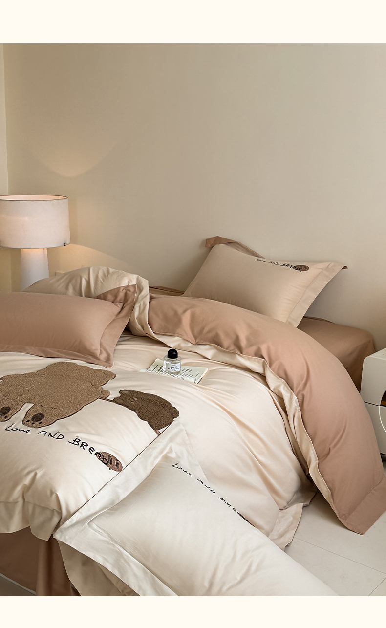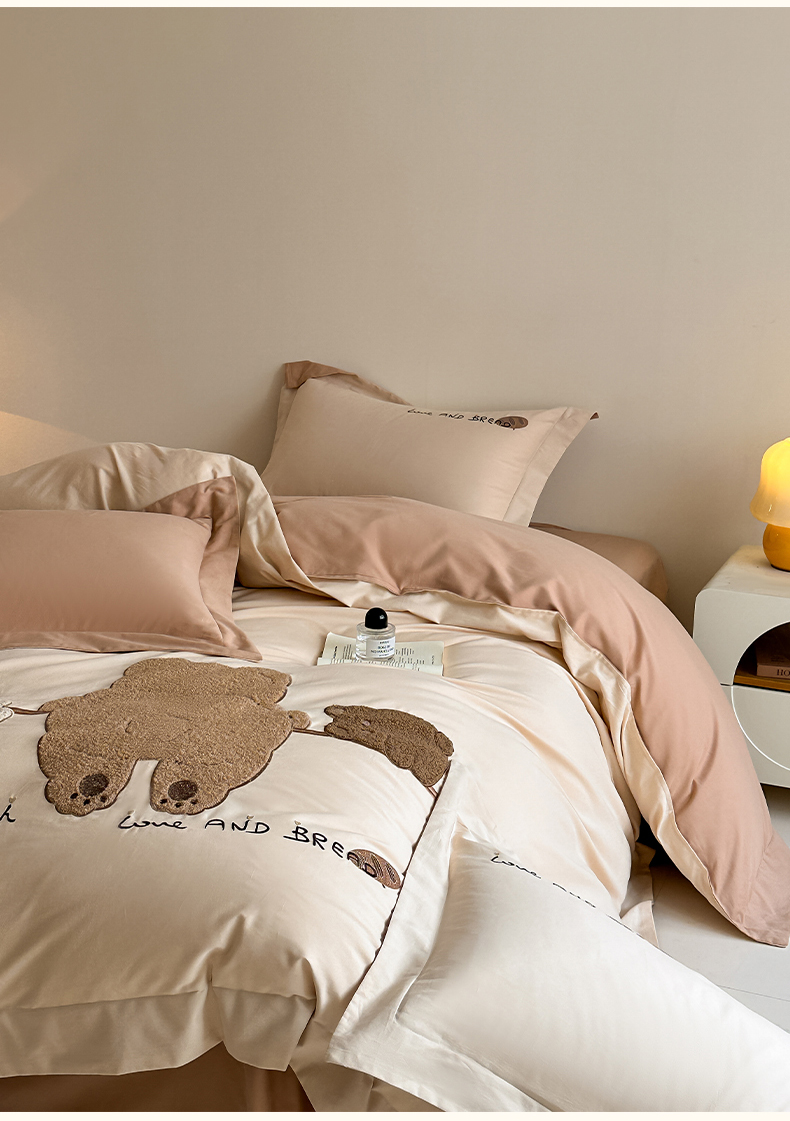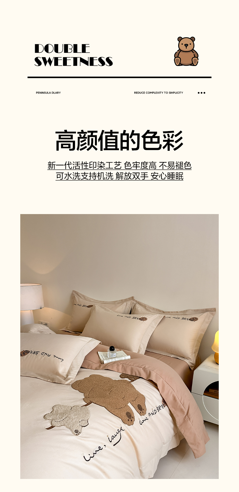 (总)蓝邻家纺 2025新款全棉高支云柔棉刺绣四件套-萌系小熊风系列