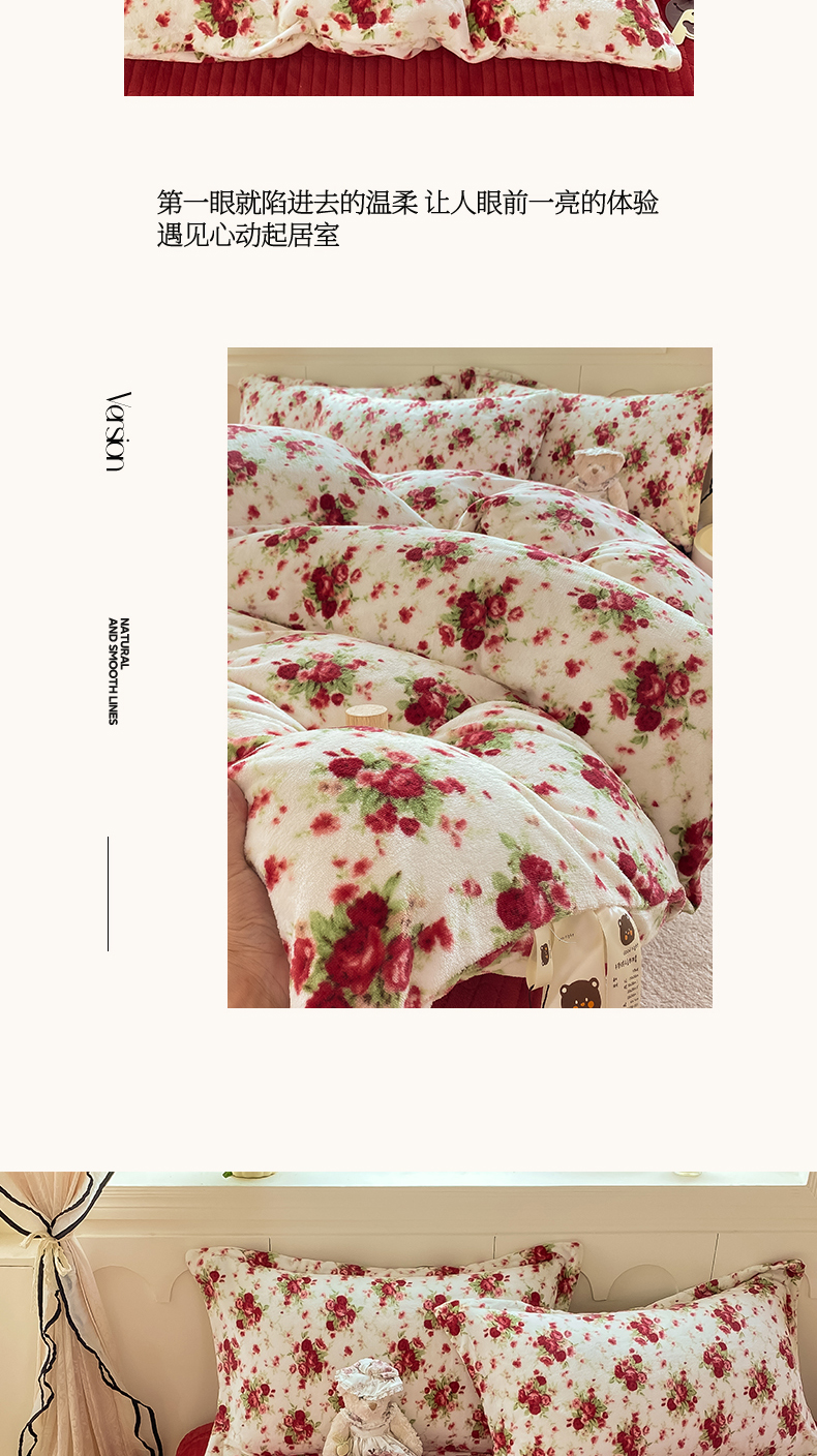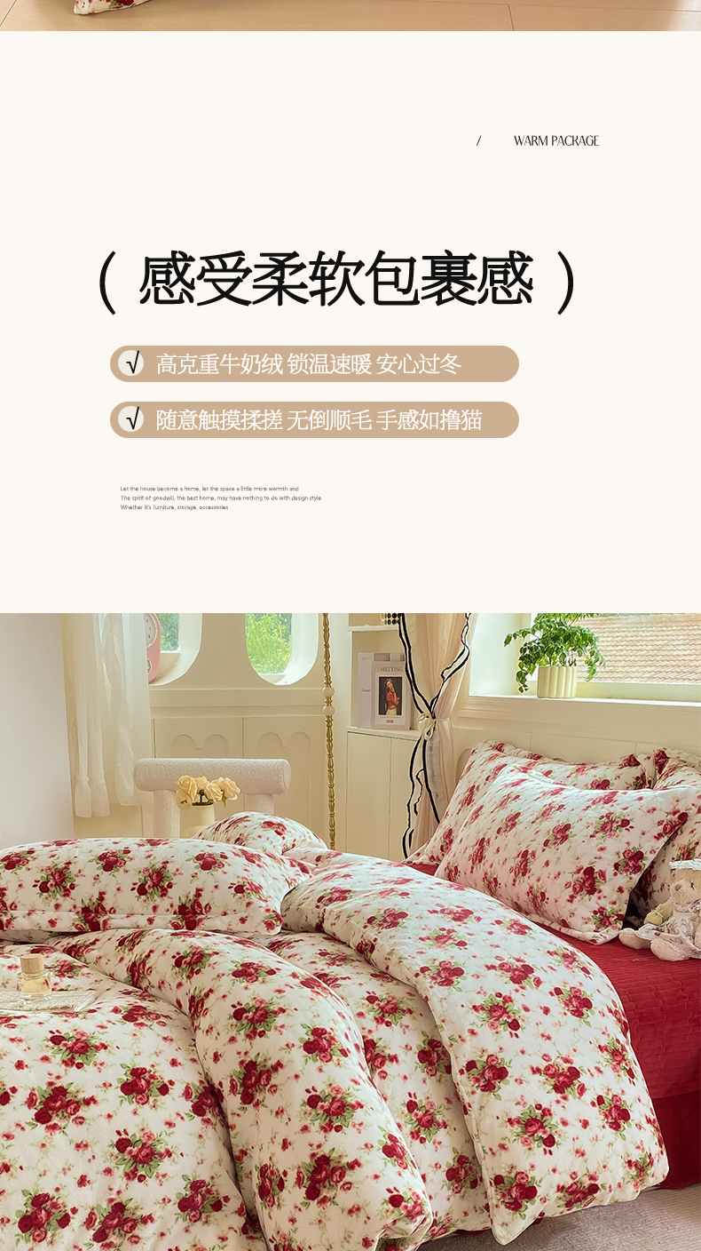 商品名称:豫见家纺 2025新款高克重牛奶绒夹棉床盖四件套 茉香