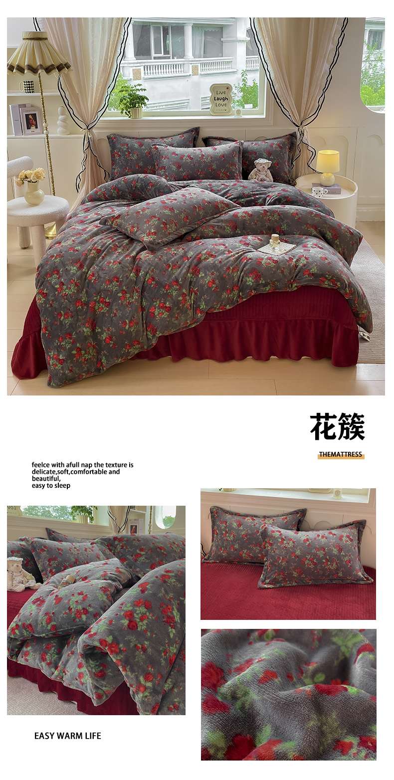 豫见家纺 2025新款高克重牛奶绒夹棉床盖四件套 茉香