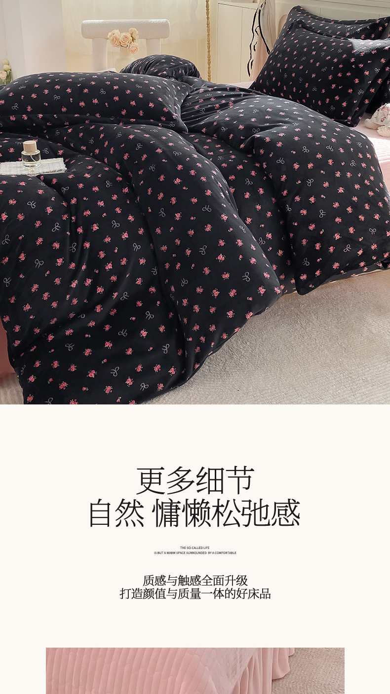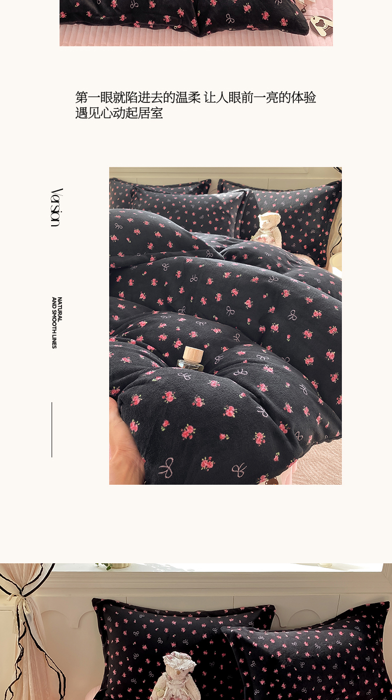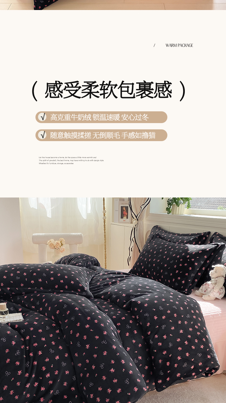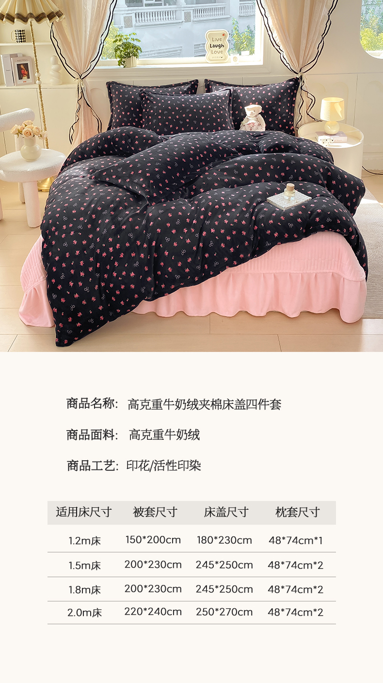 商品名称:豫见家纺 2025新款高克重牛奶绒夹棉床盖四件套 小蔷薇
