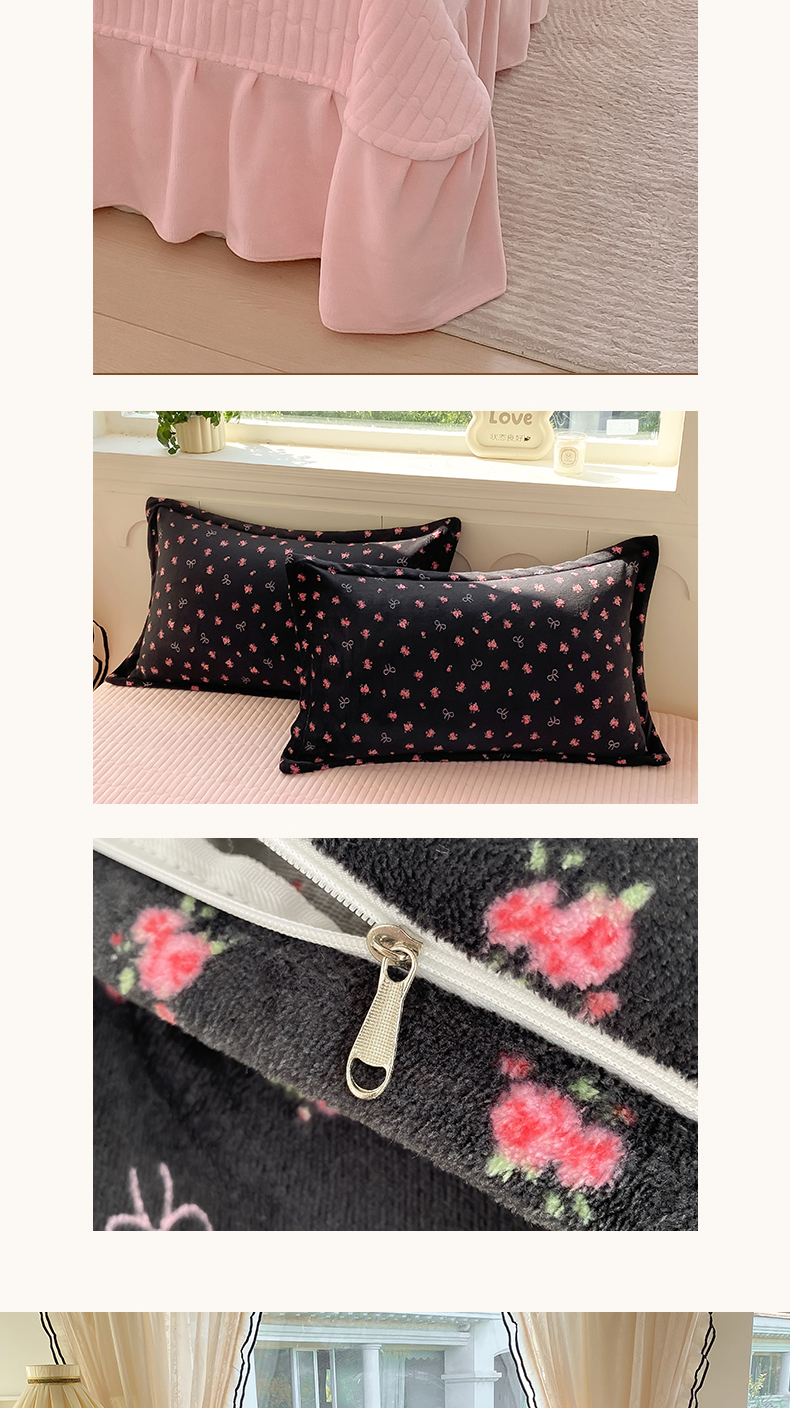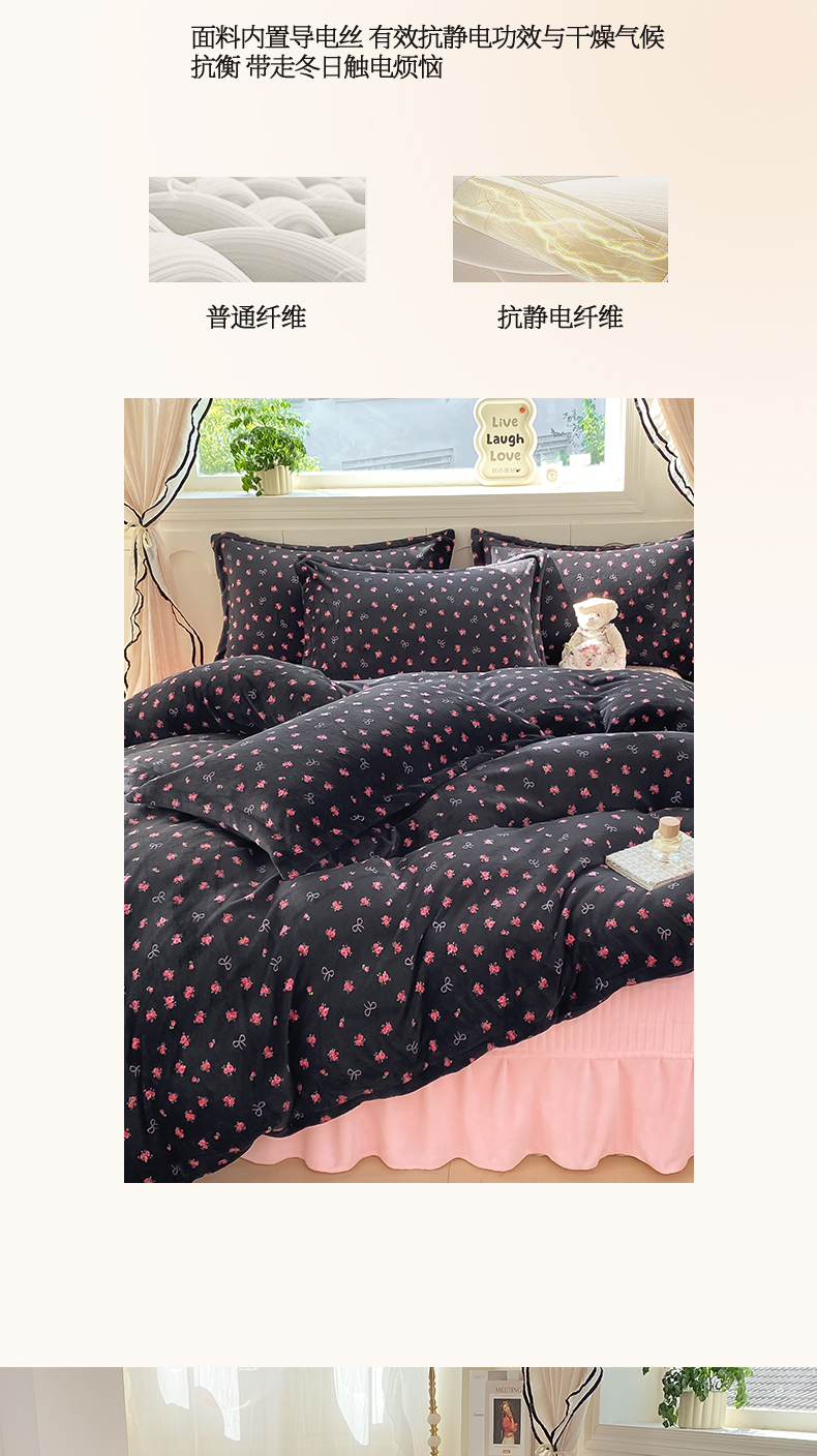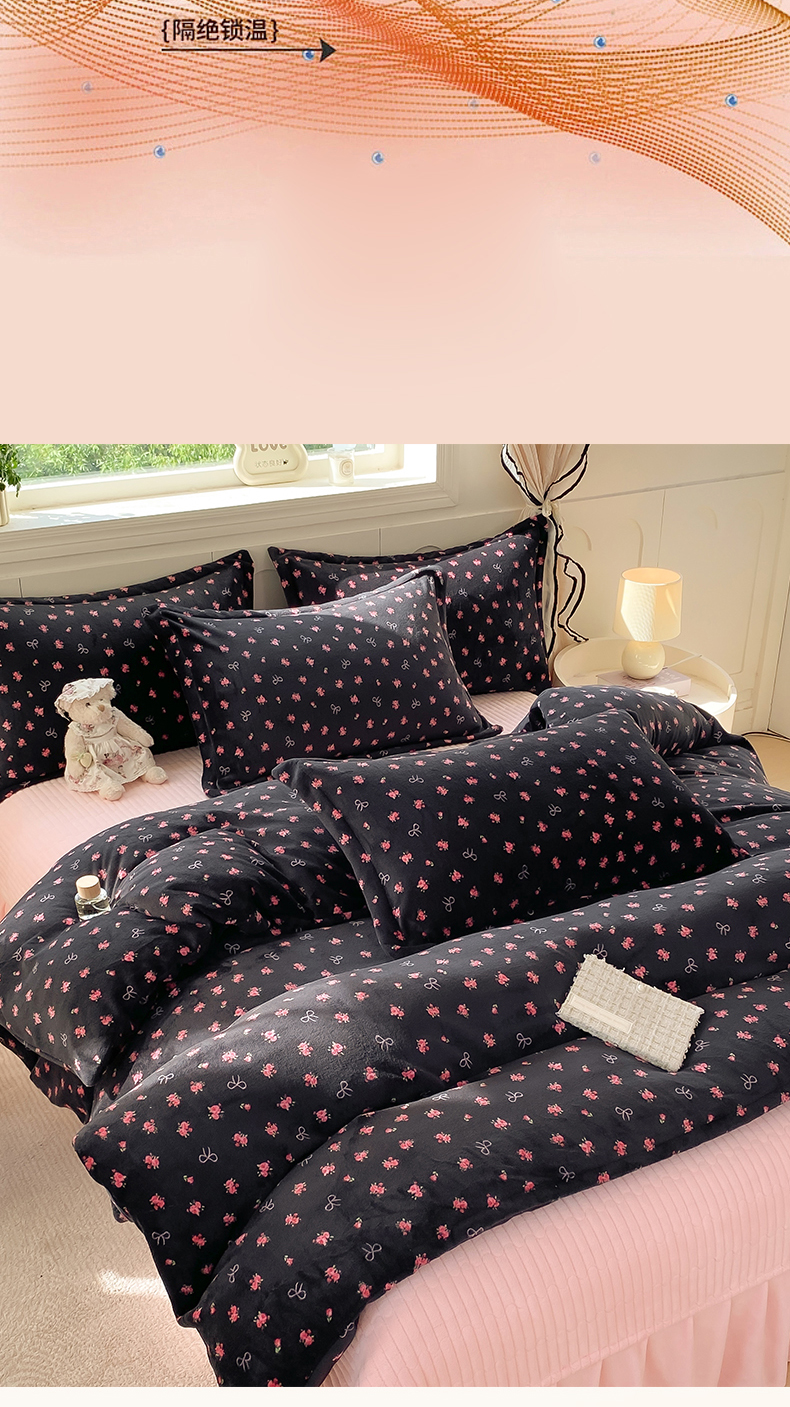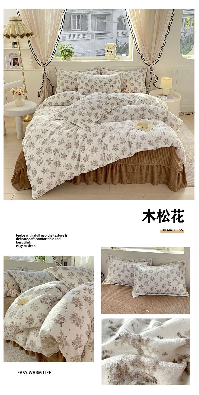 商品名称:豫见家纺 2025新款高克重牛奶绒夹棉床盖四件套 小蔷薇