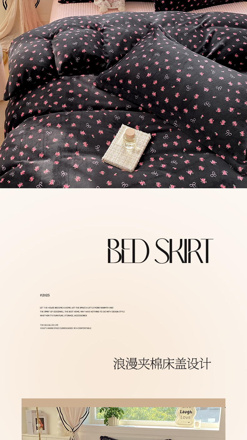 豫见家纺 2025新款高克重牛奶绒夹棉床盖四件套 小蔷薇