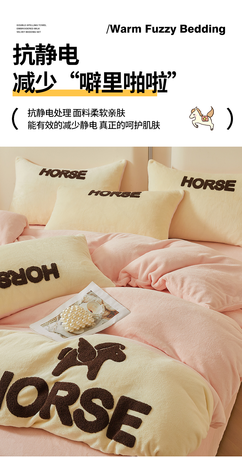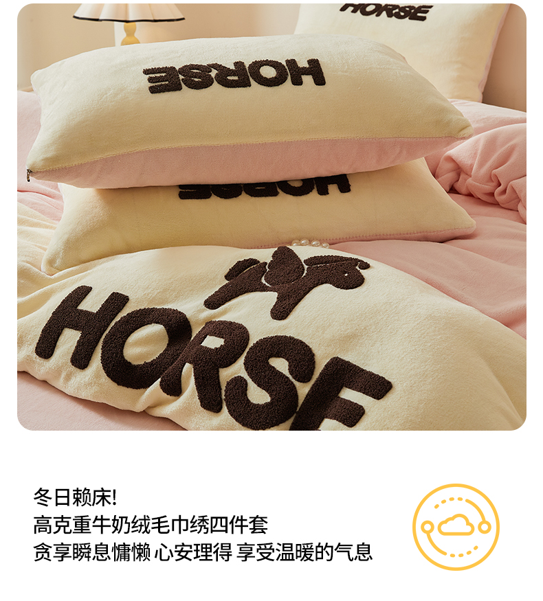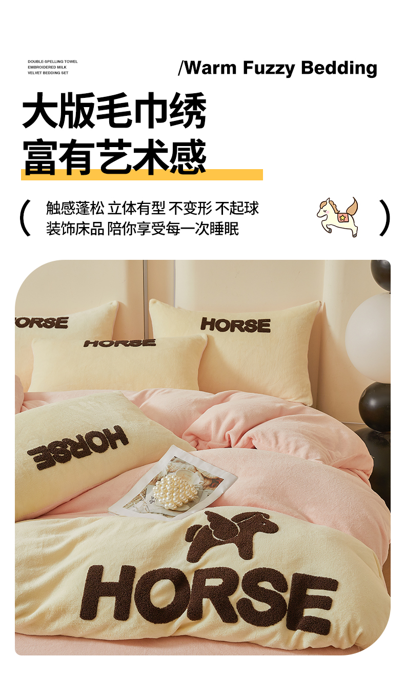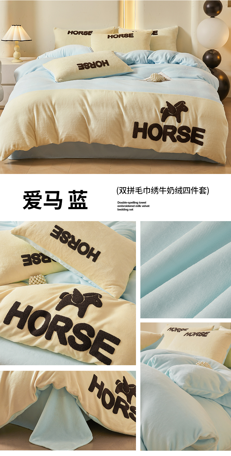 商品名称:(总)义博家纺 2025新款高克重牛奶绒双拼毛巾绣爱马系列四件套