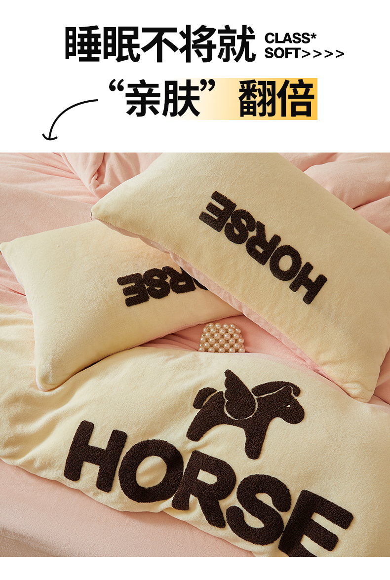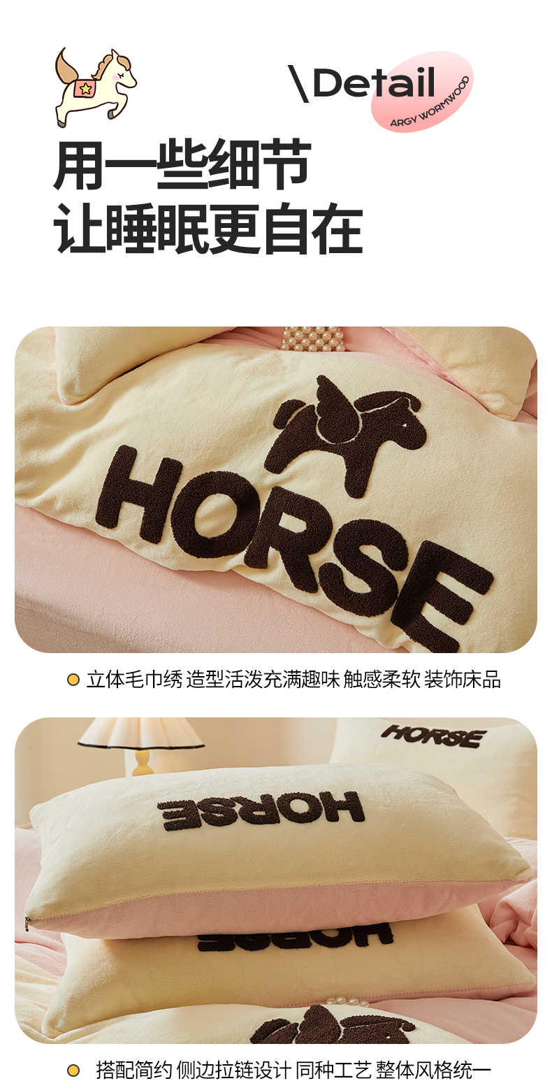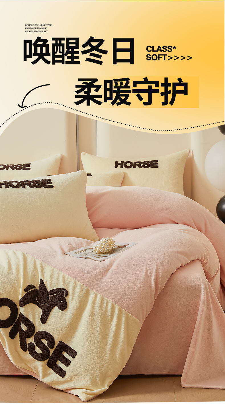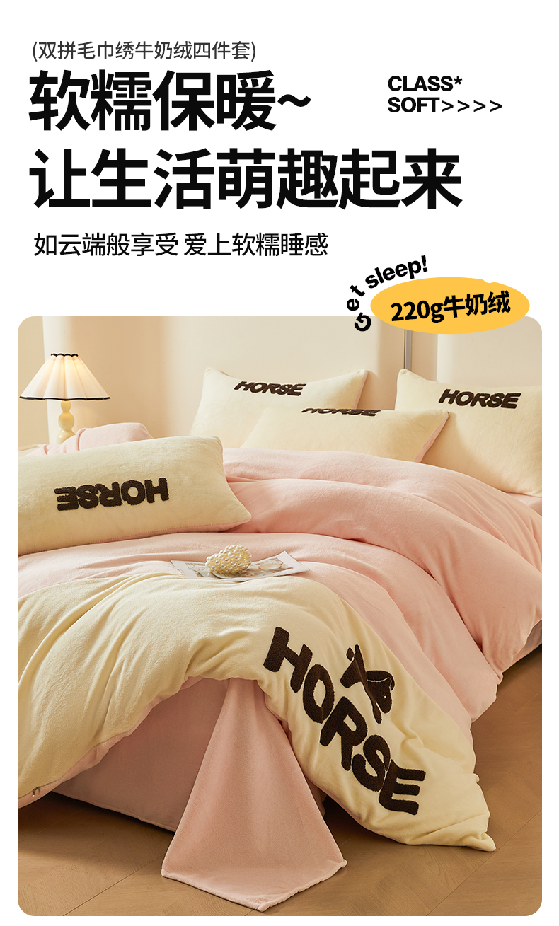 商品名称:(总)义博家纺 2025新款高克重牛奶绒双拼毛巾绣爱马系列四件套