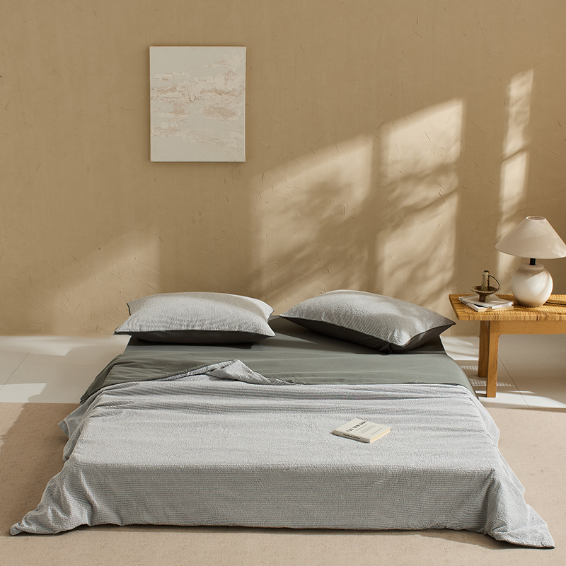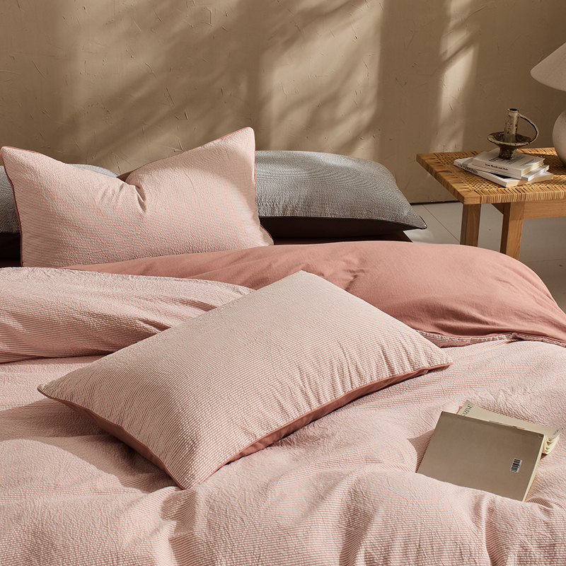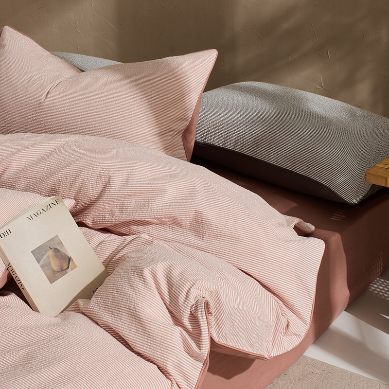 (总)LADYCOCO可可家居 2025新款三开口针织+梭织 夹棉四件套 优易套/U易套 三开口被套,唯一专利发明单位,全球专利布局,泡泡纱 条纹粉色,泡泡纱 条纹灰色,星羽皱 格子米色,星羽皱 格子灰色,双层纱 印花咖色,双层纱 印花米色