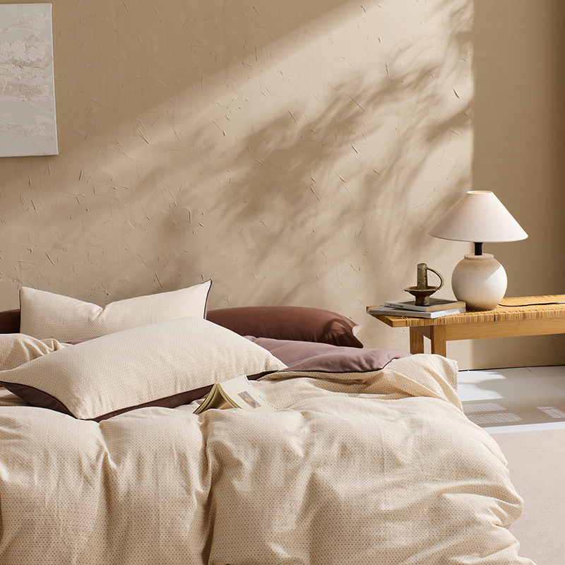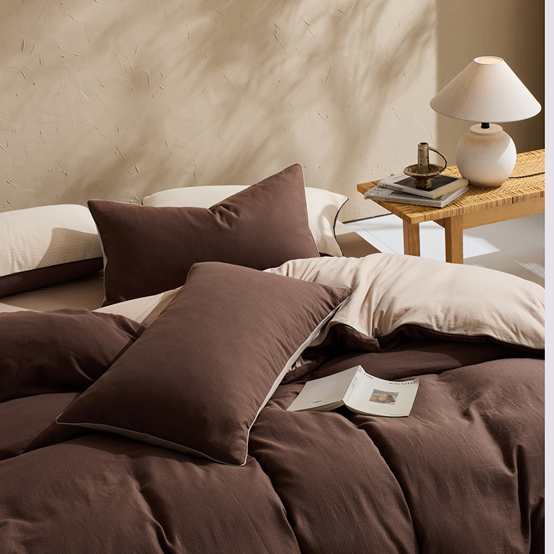 (总)LADYCOCO可可家居 2025新款纯棉针织四件套(控价不低于279元),粉色,咖色,米色